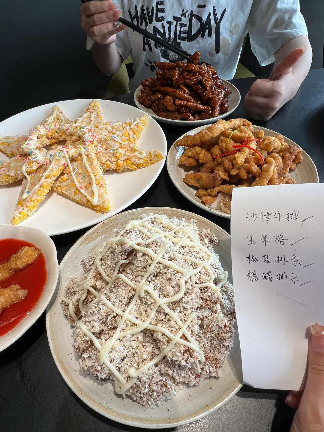 苏州坠牛逼四件套。。。。。 玉米烙!沙律牛排!椒盐排条!糖醋排条! 你...