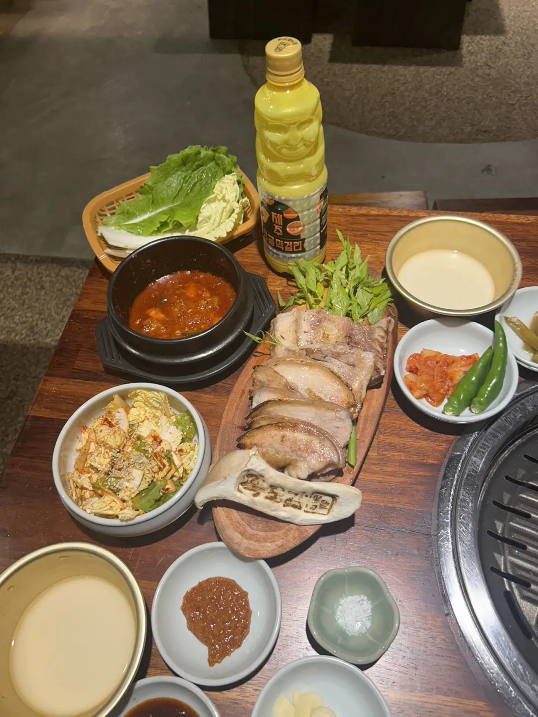 走进这家济州岛的烤肉店 仿佛进入了一个美食天堂 店内氛围让人倍感舒适。 鲜嫩的牛肉、厚实的黑猪五花肉, 每一口 感受食材的新鲜与独特味道👅 烤肉蘸盐 肉质的原生态香味难以忘怀😭 店员态度都很好 👍🏻 还有一点!黑刀盐烤肉店位于新罗免税店附近,比较方便!👍🏻 【黑刀監】 Jeju, Jeju-si, Yeondong 7-gil 20 1st floor