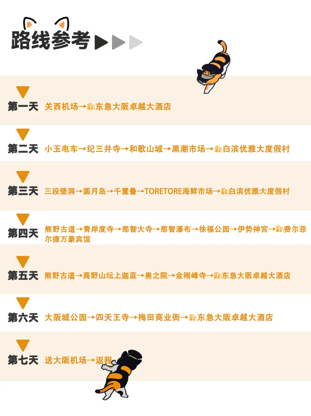 和歌山紧邻日本关西大阪府,被优美的自然🥰风光和悠久历史环绕,每一处仿佛都在诉说古老的故事,如果你想远离人潮,喜欢自然风光古色古香,那么和歌山⛰️绝对能给到你独具一别的体验,小编给大家整理了一份7天大阪往返行程