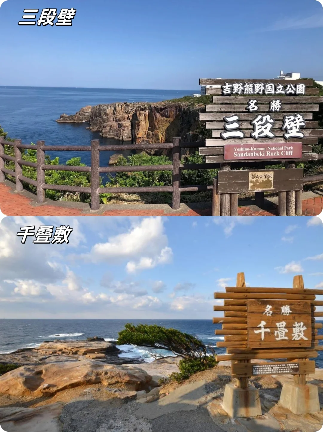 千置叠,三段壁洞:经过长期波浪🌊侵蚀而形成的奇景和岩石本身五彩瑰丽的纹路。像是几千张榻榻米堆叠而成的千置叠,以及地底下36米深的洞窟三段壁洞