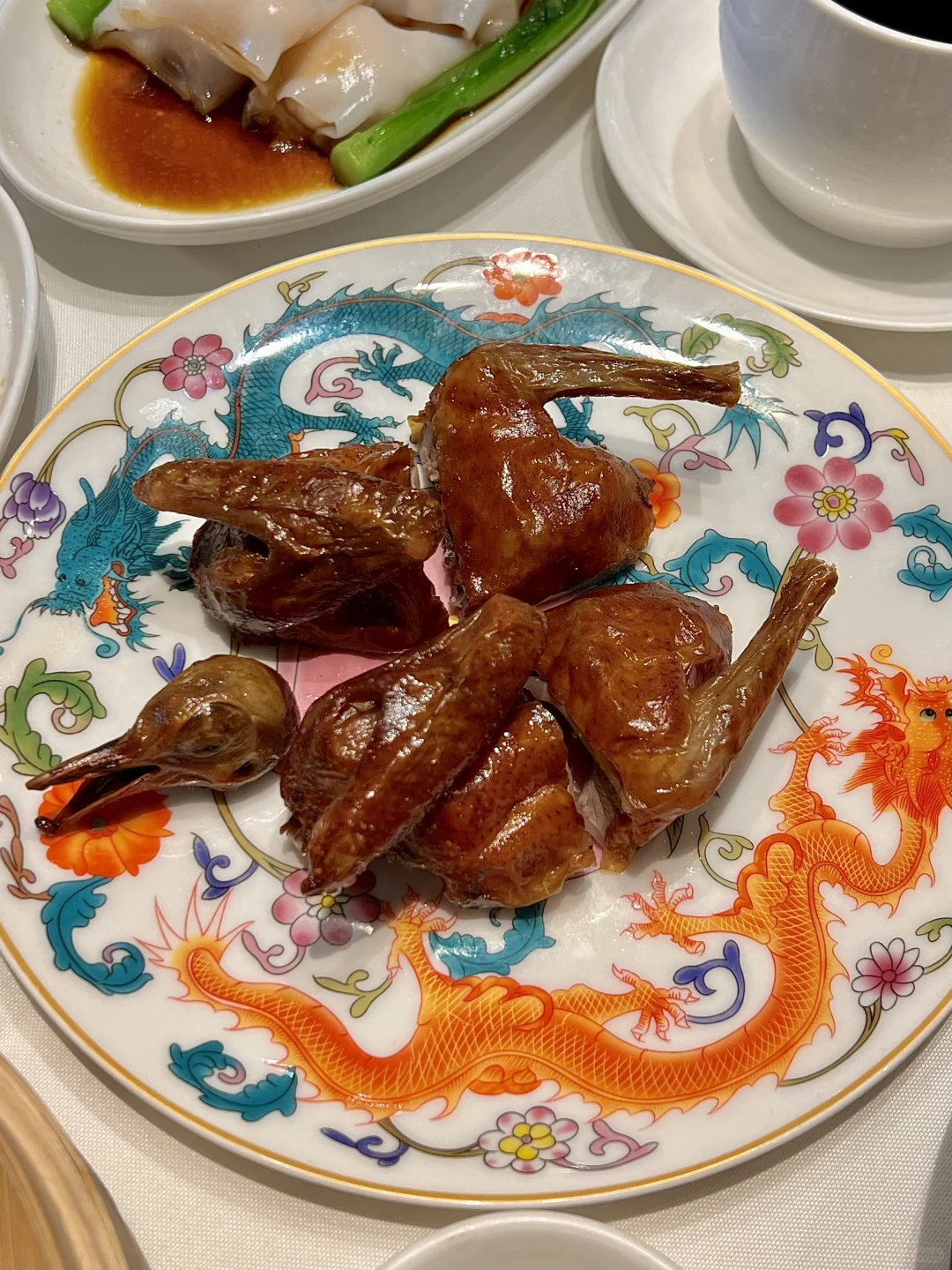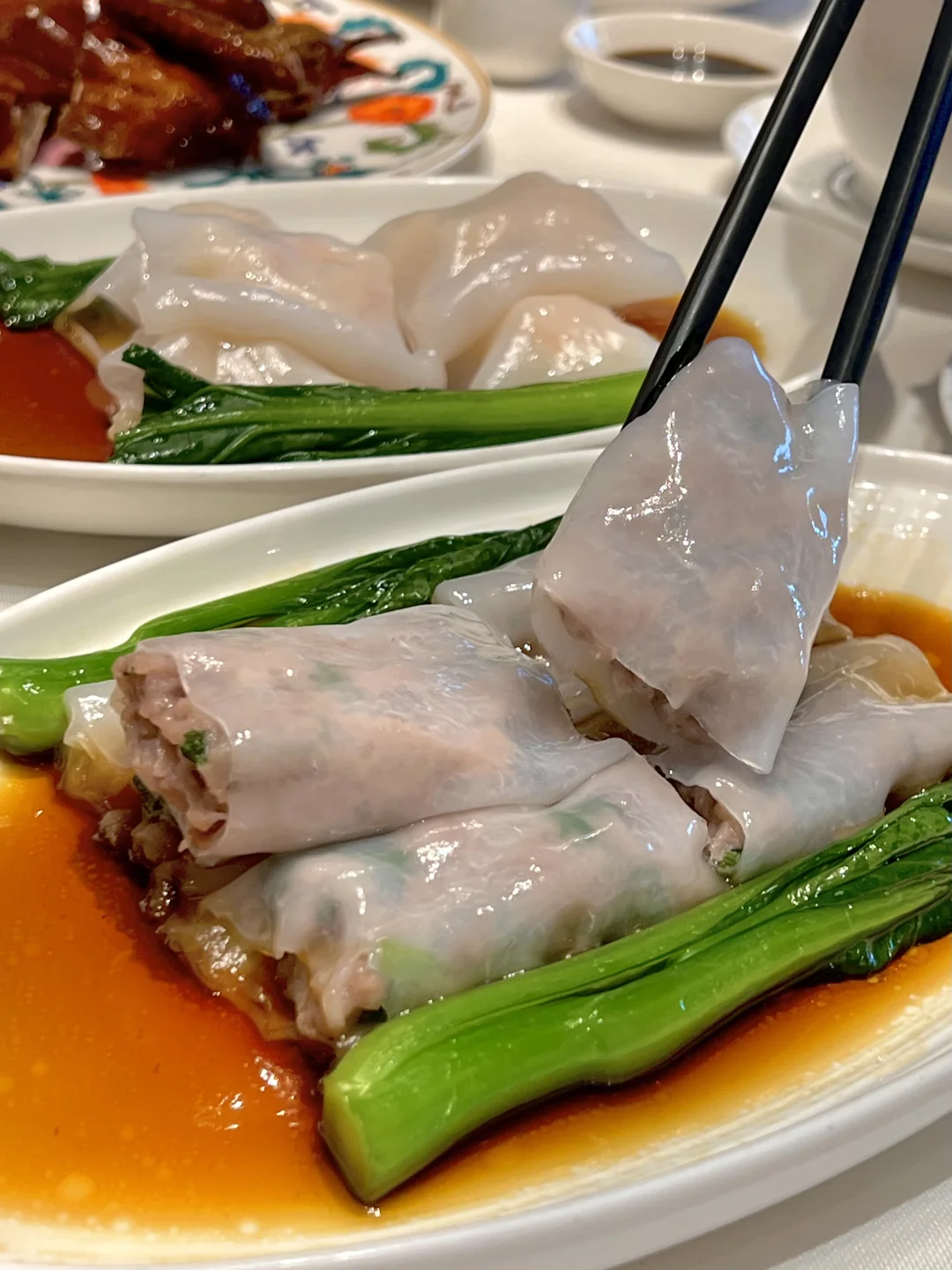 刷新了我对广式早茶的认知。。。 人均不过百的,平价海鲜来这里吃就对了!! 毫不夸张,他家肠粉我可以吃一辈子~ ⾹茅脆⽪妙龄乳鸽,鸽皮红亮酥脆,肉质细嫩,汁水足,好吃的不行! 海鲜泡饭满满一锅,真材实料,一口鲜掉眉毛,一碗接一碗的喝,停不下来的那种!! 桂花龟苓膏,duangduang的,第一次吃,入口丝滑,后面的味道有一点微苦,加入一点蜂蜜,打算以后把奶茶换成它了!! 总之菜品味道不错,环境雅致,是商务宴请、家庭聚餐、生日聚会…的性价比首选!!