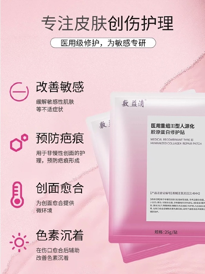 PDD【¥29.9】敷益清 医用修复贴1盒*5片有医用胶原蛋白修护贴、医用透明质