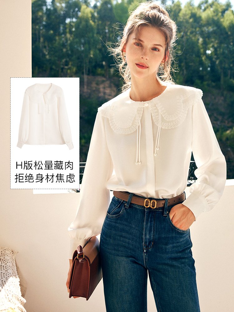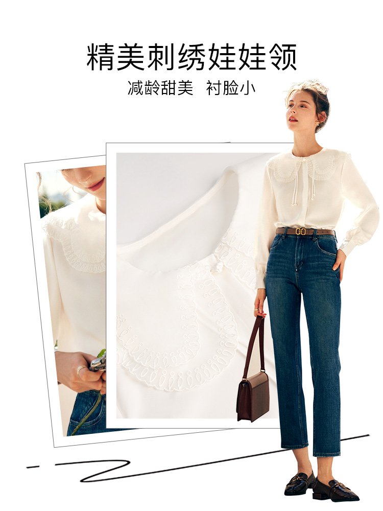 减龄刺绣双层娃娃领气质小衫