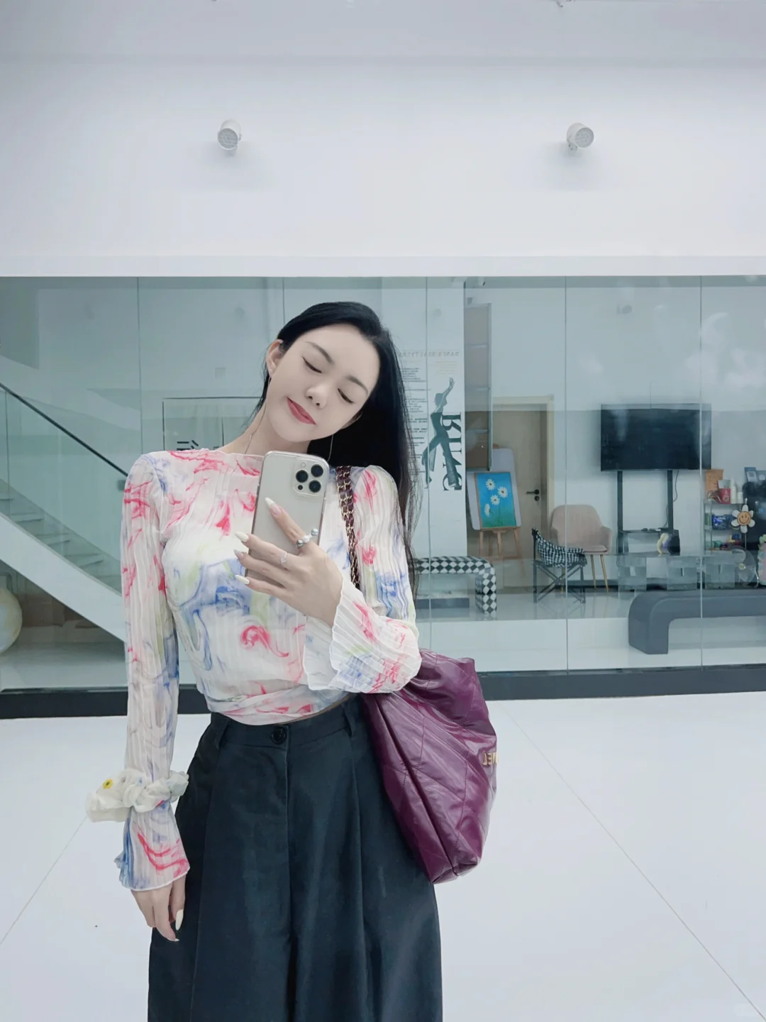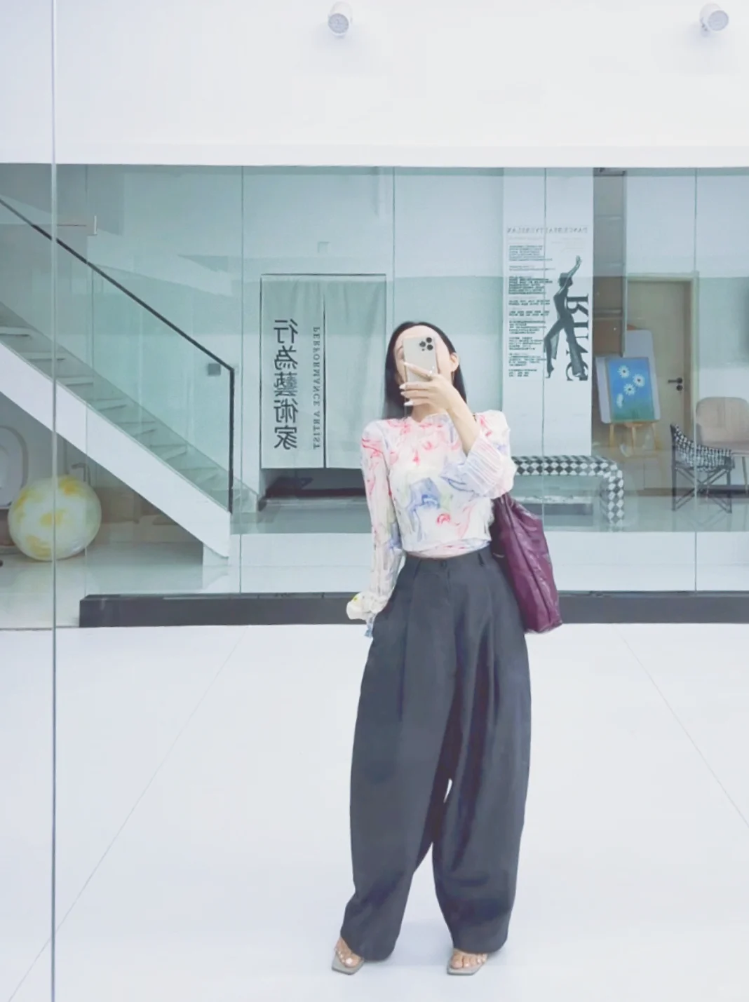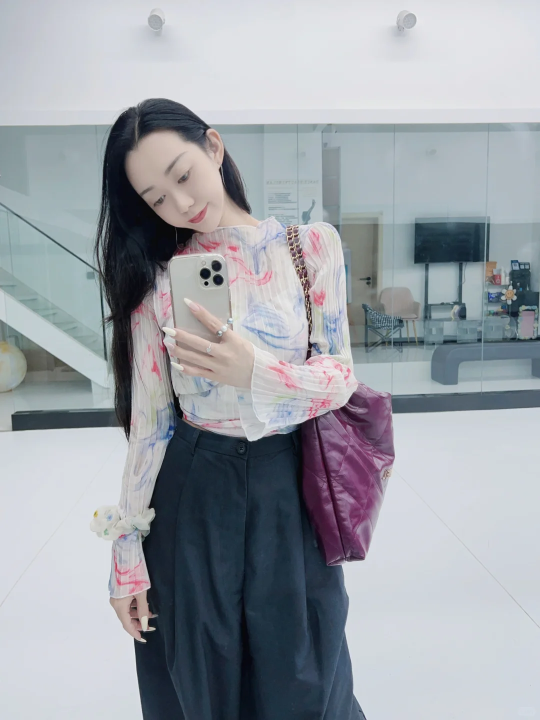上衣:渲染的百褶微喇袖口长袖(既有设计感又好搭)