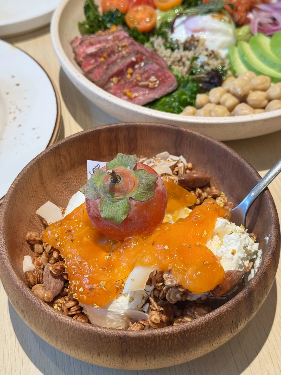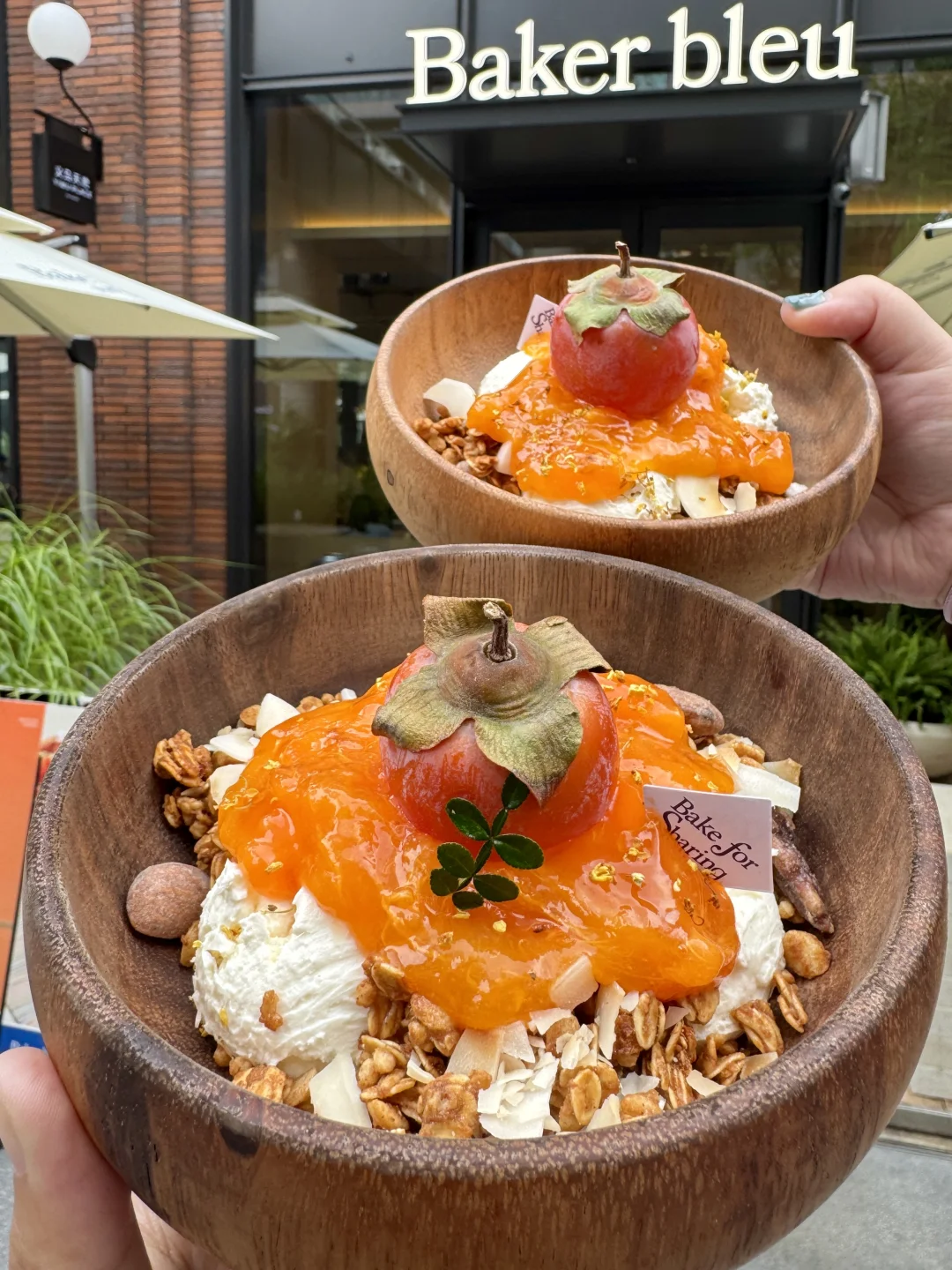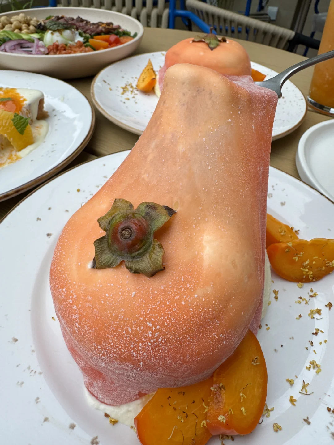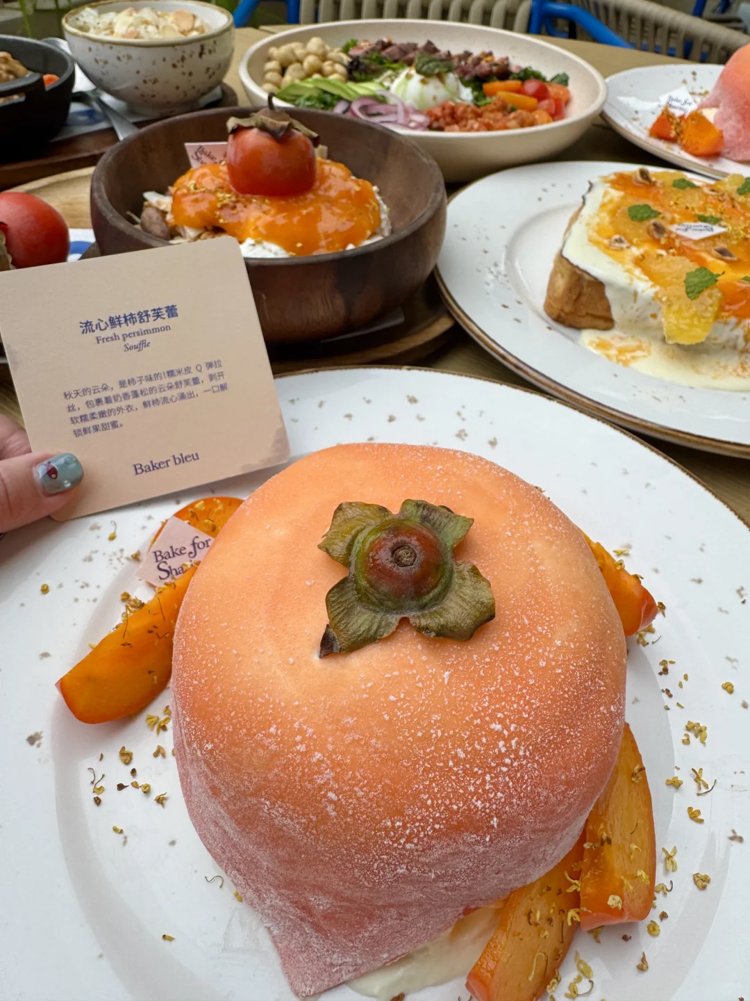 还没从40度的高温🥵走出 餐桌上的元素已经先气温一步入秋了~我喜欢的柿子红的秋天来啦! ✔️柿子吐司 流心的柿子 加上奶酱一口下去好满足🥹 ✔️柿子酸奶碗 晶莹剔透的酸奶碗太好看噜 新鲜的流心柿子➕粘稠的希腊酸奶 搭配麦片椰子片🥥口感丰富尊嘟绝咯 ✔️柿子舒芙蕾 柿子舒芙蕾上还有糯叽叽的大福 超多柿子果肉一整个软fufu的!