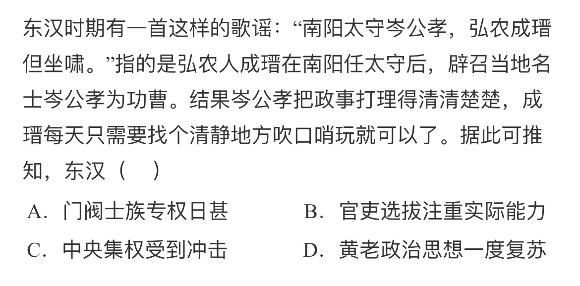 材料反映的是统治基础的扩大,并不涉及选官标准和形式的改变,排除A项;