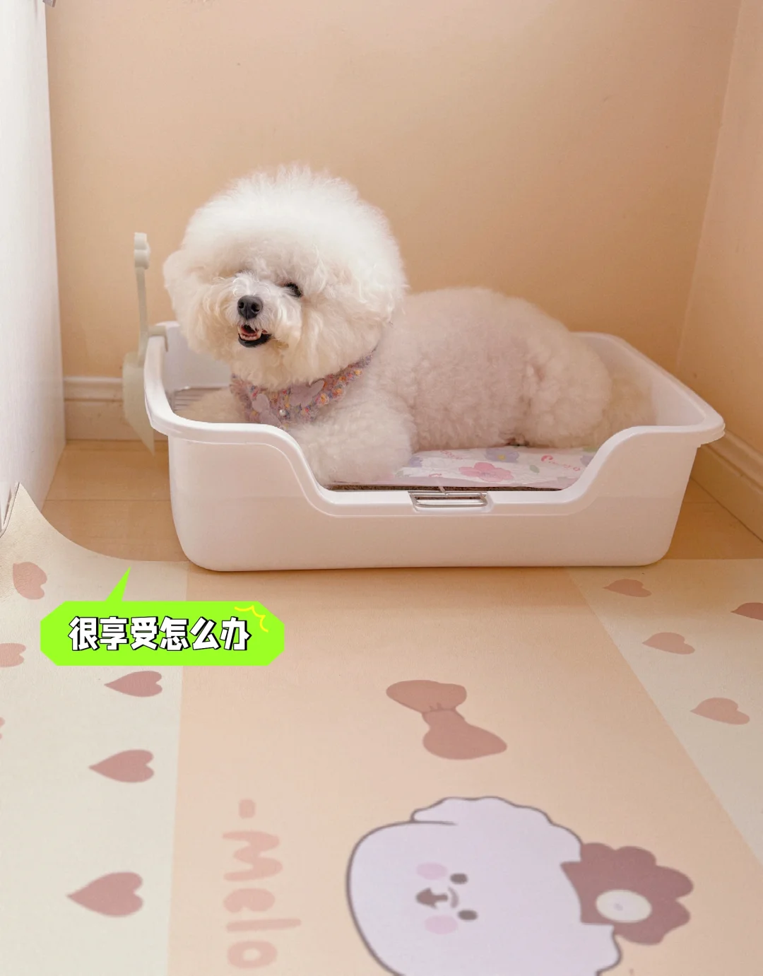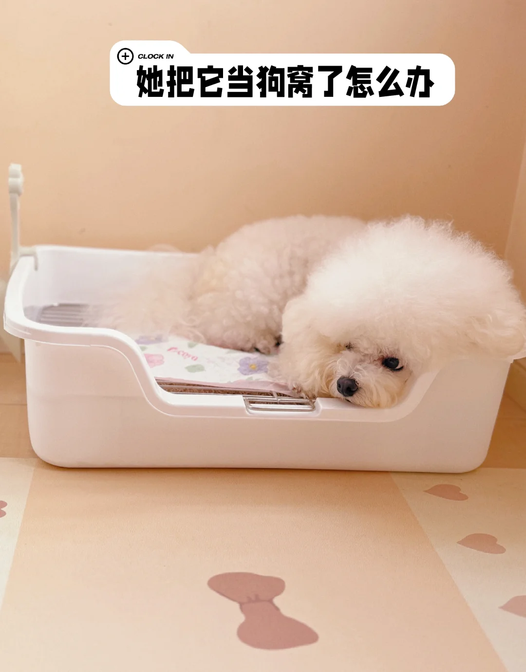 一开始不敢上去,给他们吃零食奖励,他们慢慢接受了,我也蛮开心的,问题是他们的接受程度好像超越了厕所的功能性转为狗窝,安安心心的睡在里面了,这个铁架间隙也是大了点,我先放了张尿片让他们慢慢适应,目前也就想到这样了,哎!在线等更好的办法