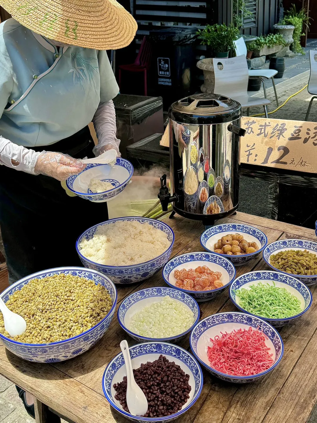 糯叽叽的苏式小糖水,谁会拒绝啊!! 五颜六色的...甜食脑袋狂喜~ 苏式绿豆汤,一定要喝,夏天续命全靠它 蟹黄包裹着每一根面条,直接鲜晕了! 阿姨现包的蟹黄汤包,一口爆汁 苏州真的好浪漫啊啊💕