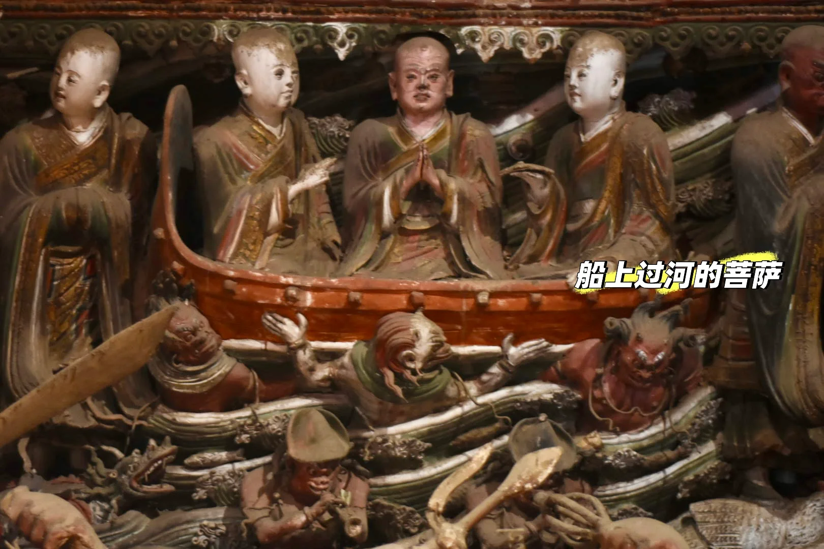 陕西蓝田县水陆庵,以3000多尊明代彩塑闻名,具体的在上一篇笔记聊过,可查阅 除了菩萨仁慈神将威武,在慢慢观赏中,在角落也看到一个苦逼的群体——小鬼(不太了解佛经典故,如有误请指正) 大多为高僧菩萨,抬轿撑船 看到一艘船上,大德高谈阔论,好不自在,往下,是一群努力划船的牛马小鬼,还吹拉弹唱,氛围感拉满 一个风光的罗汉,是一个小鬼抬着 大多惟妙惟肖,还有点意思 在一群大佛菩萨武士间,还是有那么一个位置,留给小鬼 一下被共情了,每个牛马,都值得被看见😂 我是乐乐大王 分享小城人文 古建|民族|非遗