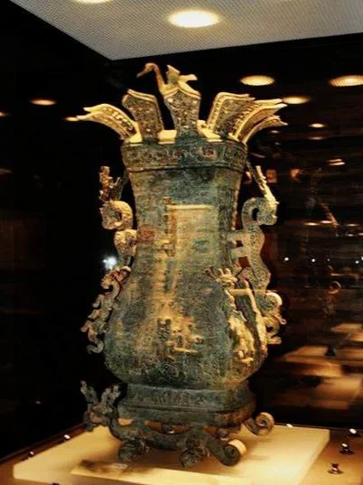 青铜制盛酒或盛水器,出土于河南新郑,一收藏于北京故宫博物院青铜馆,一收藏于河南博物院,中国首批禁止出国(境)展览文物