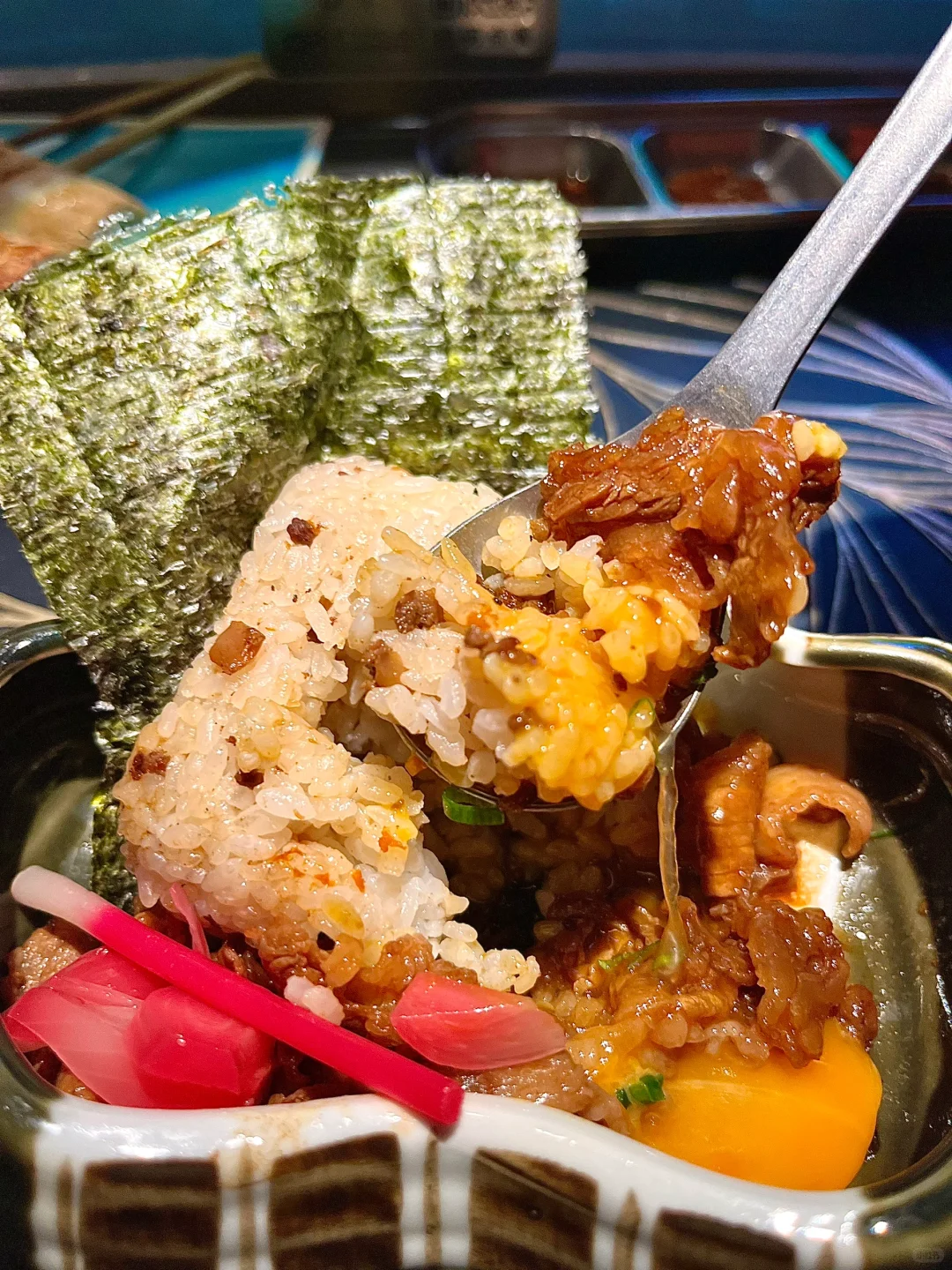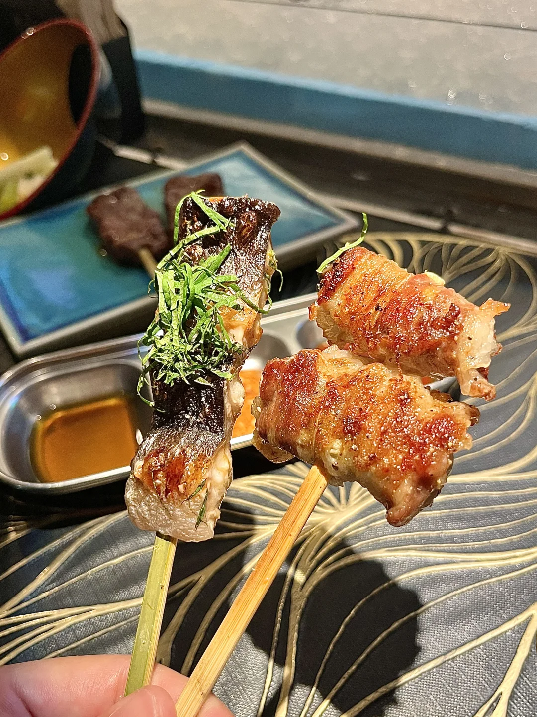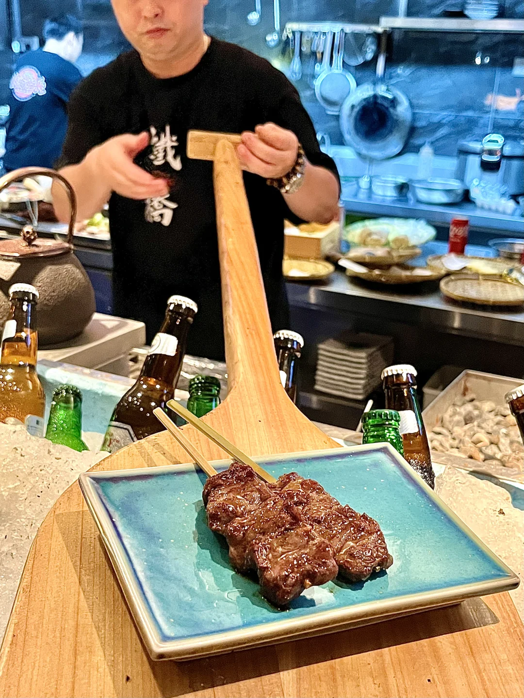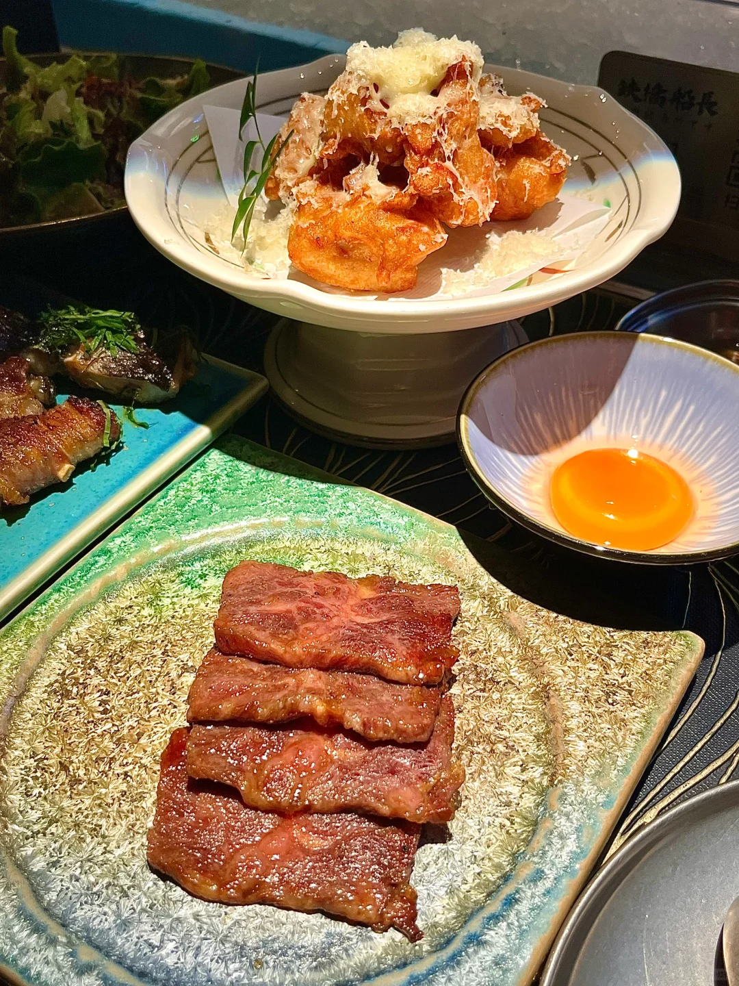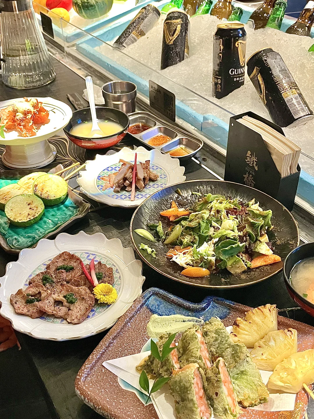 - 小榄日式烧肉🥩 师傅咻就把烤肉递到面前😆 烧烤就能立刻吃上!氛围感满满! - 🔥酱烧牛叻条 新鲜爆汁!吃起来甜甜的好嫩! 🔥牛板腱寿喜烧 鲜嫩的牛板腱蘸鸡蛋丝滑😋 🔥盐葱薄切牛舌 葱酱的香气和脆嫩的牛舌😋好好吃 🔥紫苏虾滑天妇罗 虾滑Q弹被紫苏包裹!一口接一口 🔥牛肉寿喜烧饭团🍙 鸡蛋拌牛肉和饭一起吃😋 - 牛油果冰菜沙拉🥗清爽解腻😋肥牛生蚝卷、 紫苏活鳗鱼都好新鲜!烤菠萝甜甜的好好吃! 服务态度都好好!好特别的烤肉,小酌一杯🍺 -