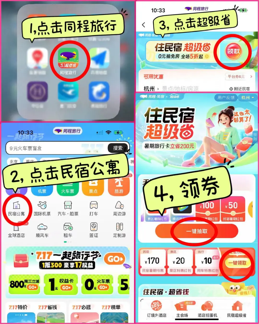 一般会对比三家的我,看到同程旅行订民宿有“暑促超级省”活动