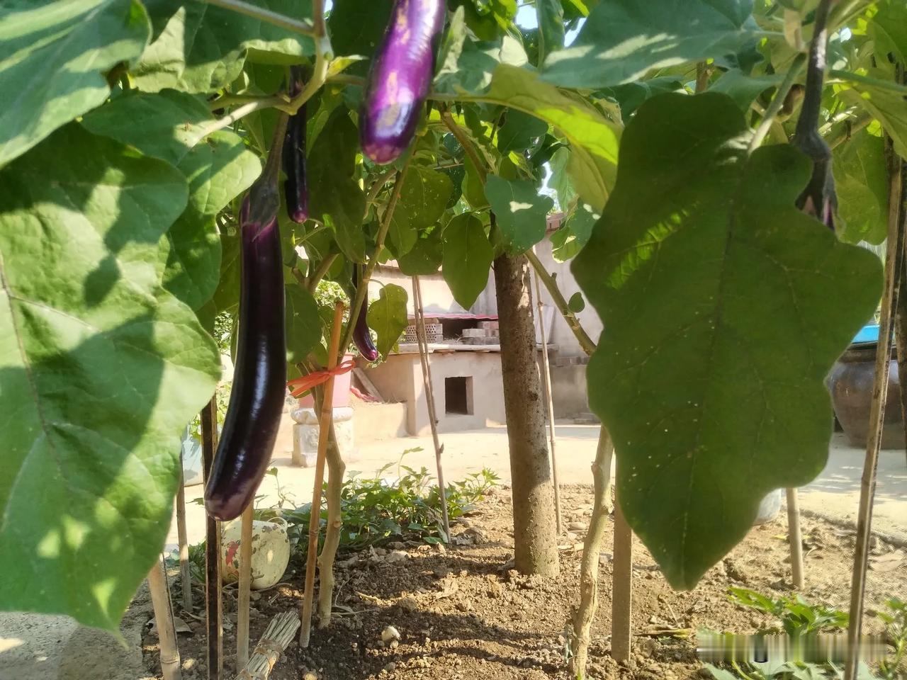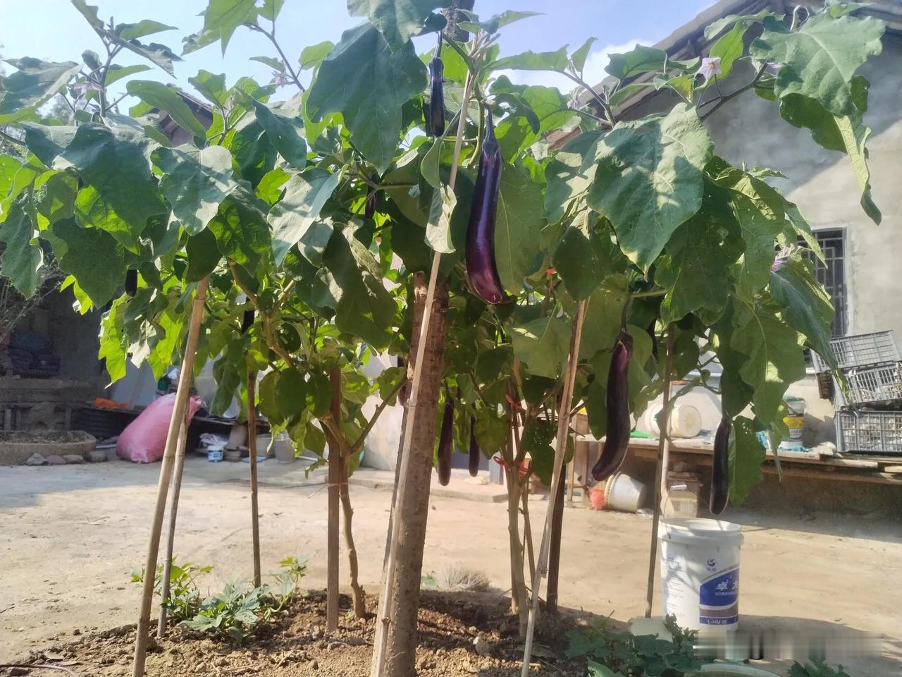 一个好汉三个帮,两棵茄子九个桩。我在庭院的桂花树蔸栽了两棵茄子,长了1米7高。老婆一边打撑一边说:“人没得卵高,栽棵茄子长得这么高。” 马上就10月了,茄子枝繁叶茂还在长,茄子结得多吃不赢,我经常摘了给鸡吃。 #秋日生活打卡季# #我的退休生活# #种菜#