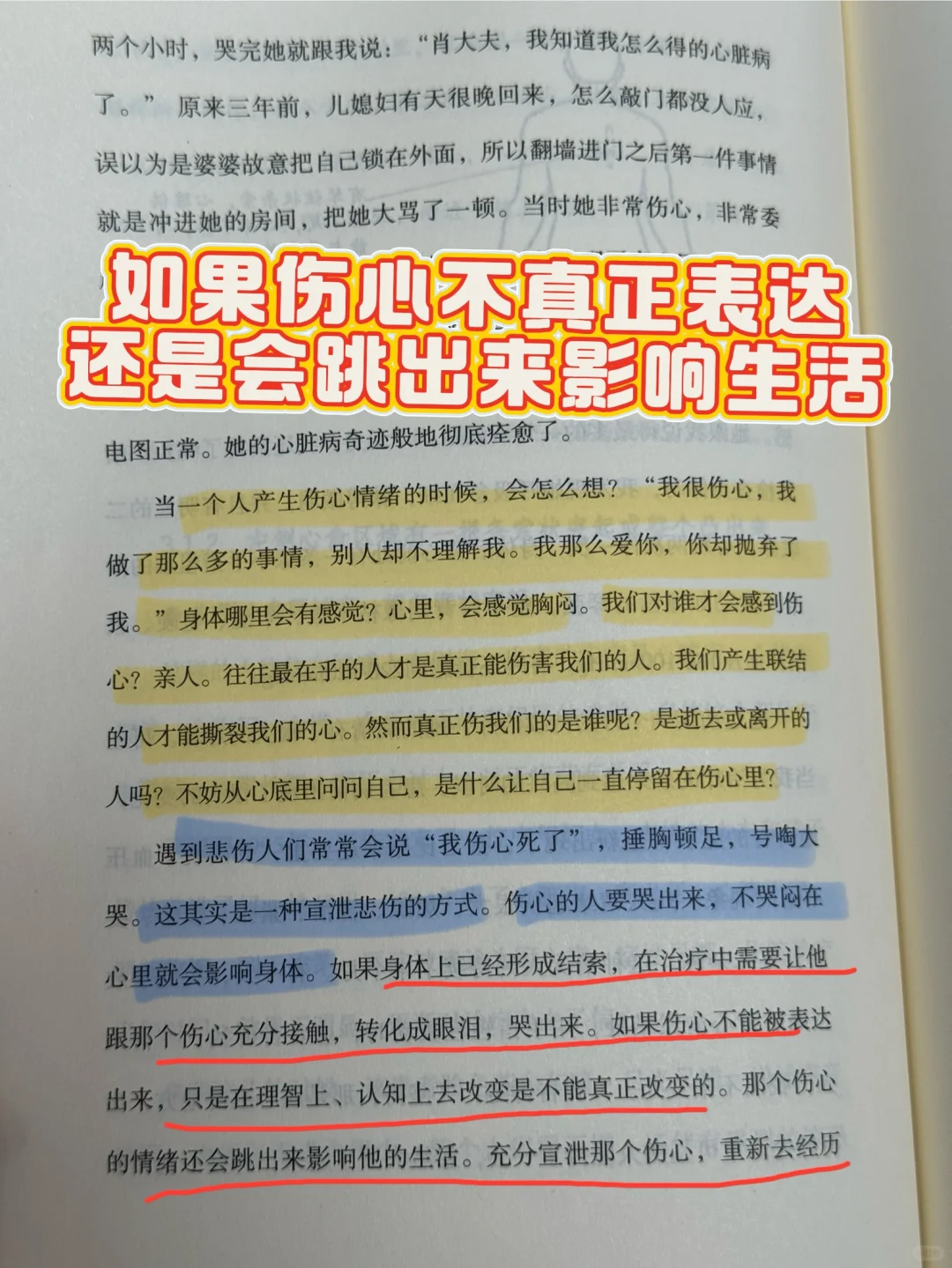 伤心的人要哭出来,不哭闷在心里就会影响身体。如果身体上已经形成结索,在治疗中需要让他跟那个伤心充分接触,转化成眼泪,哭出来。如果伤心不能被表达出来,只是在理智上、认知上去改变是不能真正改变的。那个伤心的情绪还会跳出来影响他的生活。 【充分宣泄那个伤心,重新去经历它,才能把伤心放下。做治疗时,把手放在那个伤心反应的部位鼓励对方哭出来。】AG基因学/香气催眠,会有很好的效果! 情感 【