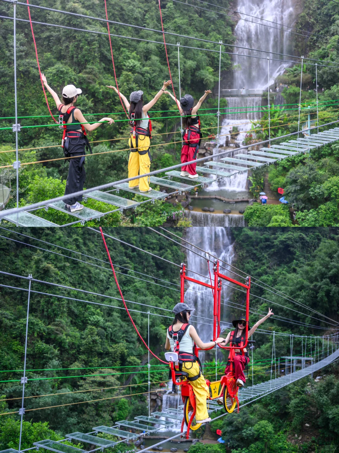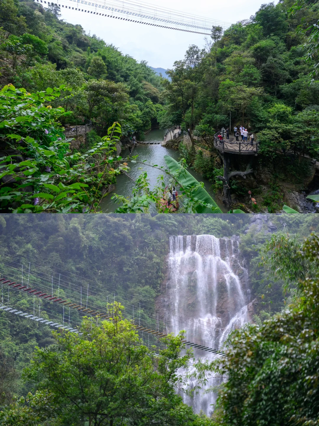 ✅瀑布惊心悬崖吊桥/悬崖单车:横跨在险峻的山峰之间,高悬于 180 米的山谷之上。行走其上,心跳加速,抬眼可仰望壮观的大瀑布,远眺笔架山山脉的连绵起伏,低头则能俯瞰森林栈道与郁郁葱葱的植被。