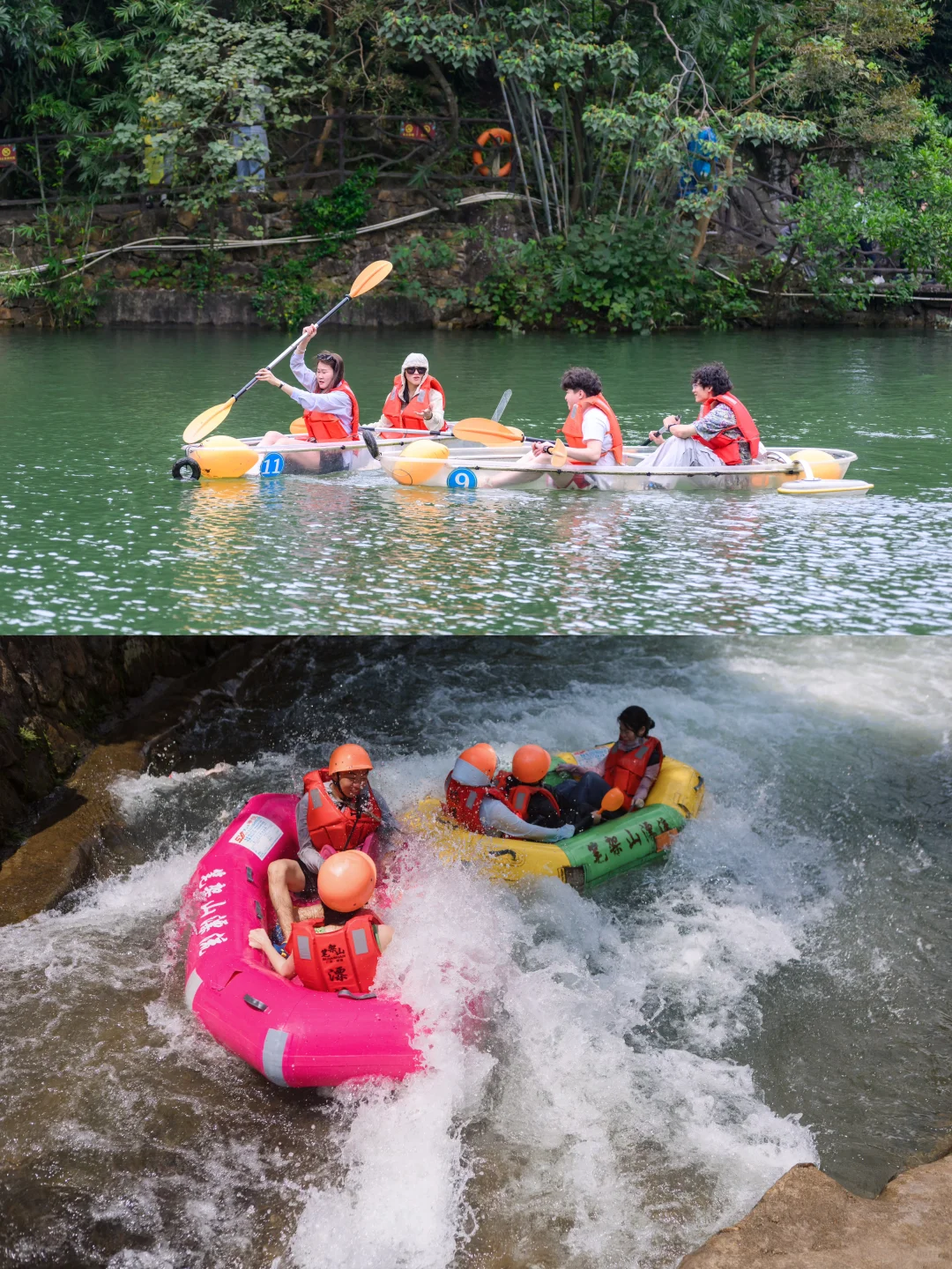 ✅笔架山漂流:享有“广东漂流鼻祖”的美誉,河道总落差达 130 米。上段水流急缓交错,惊险刺激;中段奇幻“洞”感,神秘莫测;下段水流平缓,可尽情泼水狂欢,畅享欢乐时光。