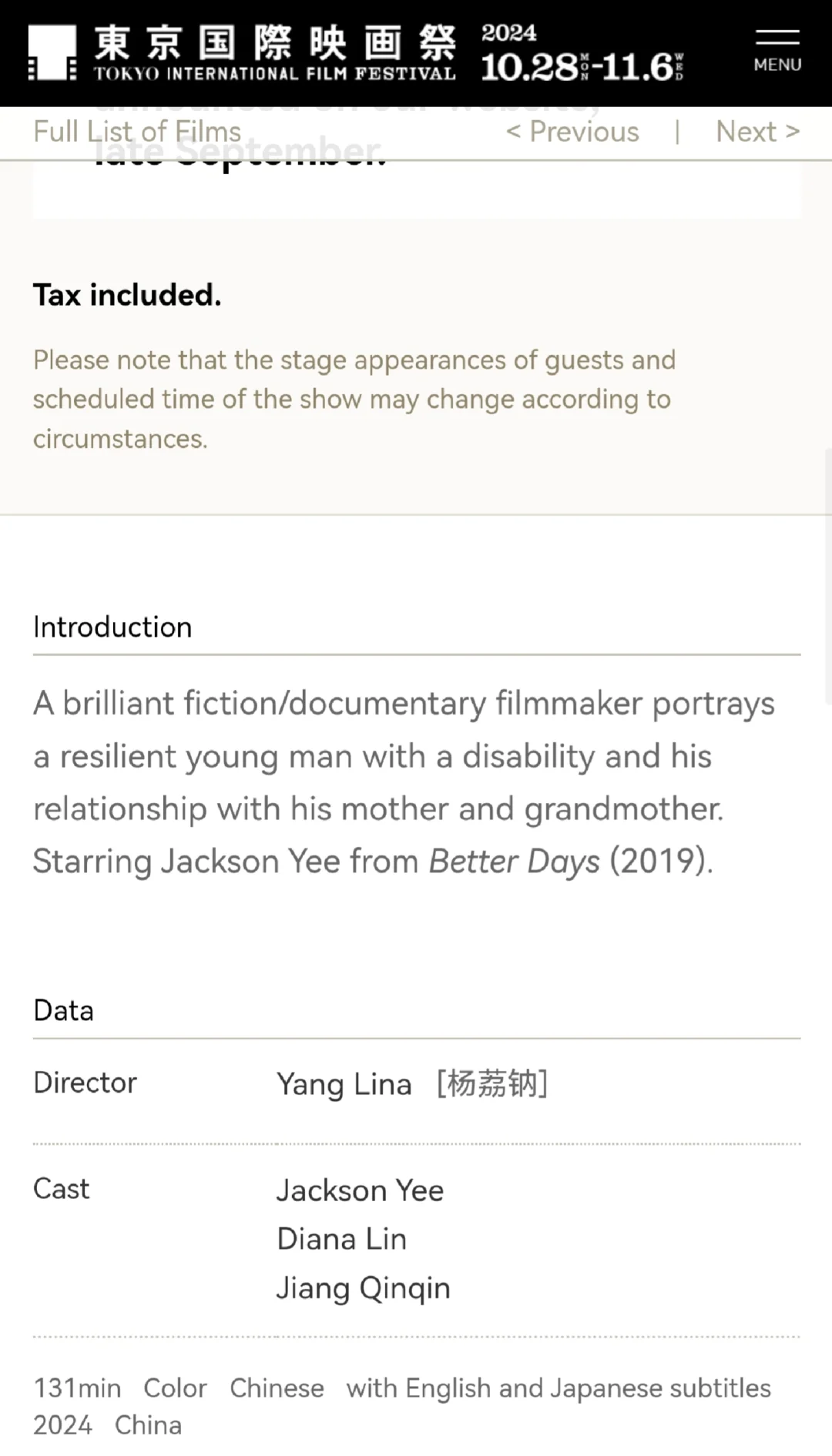 电影《小小的我》东京国际电影节放映日程🈶11月2号3号5号共有三场,电影配有中文、英文和日文字幕