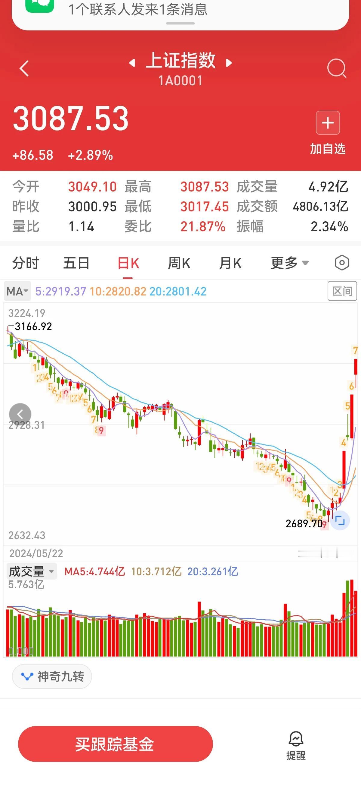 这两天基本上身边的人都在聊股市了,包括很多从不炒股的,都准备开户入市,我在想,我确实错过了几天的大行情,只涨了一点就慢慢卖了,我承认对股市的热度严重低估了。可是再看看这几天的K线,再想想当下的经济面,我实在下不去手了,错过了就错过了,底部拿不住已经犯了一大错,再追涨可能会犯第二个错,想想还是算了吧。