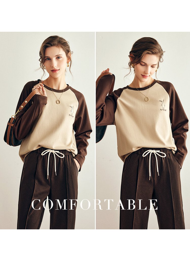 采用双面棉面料,触感柔软亲肤,质感强;穿着挺括且舒适,久穿不易变形,日常好打理;拼色设计个性SHI足,元气减龄,时髦有型
