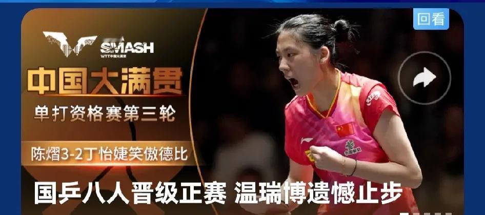 WTT北京大满贯赛今天的比赛全部结束,资格赛的三轮比赛也结束,国乒队参加正赛的名单已经出来了,共有八名运动员进入正赛。明天北京大满贯赛正赛将拉开帷幕,比赛也更加精彩和刺激,不知道中央电视台体育频道会不会转播。中国乒乓球队加油!
