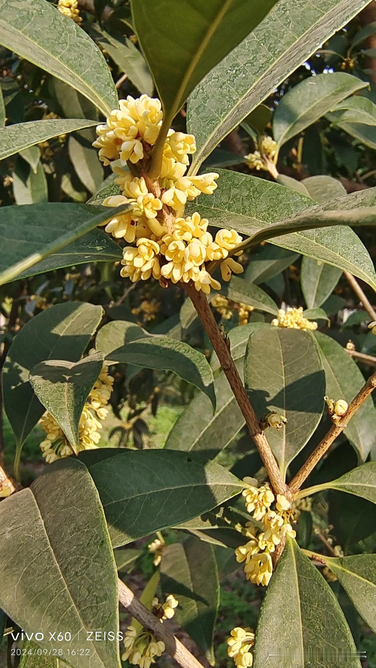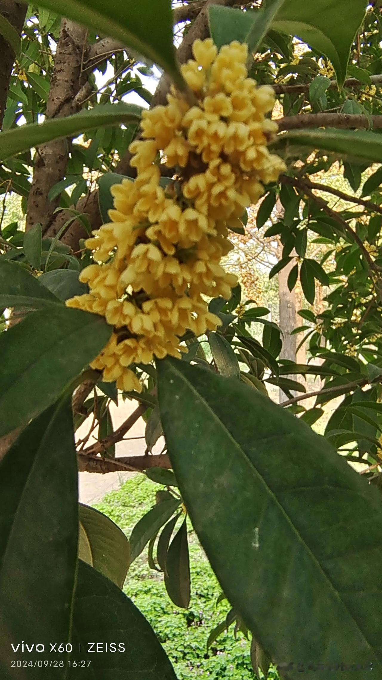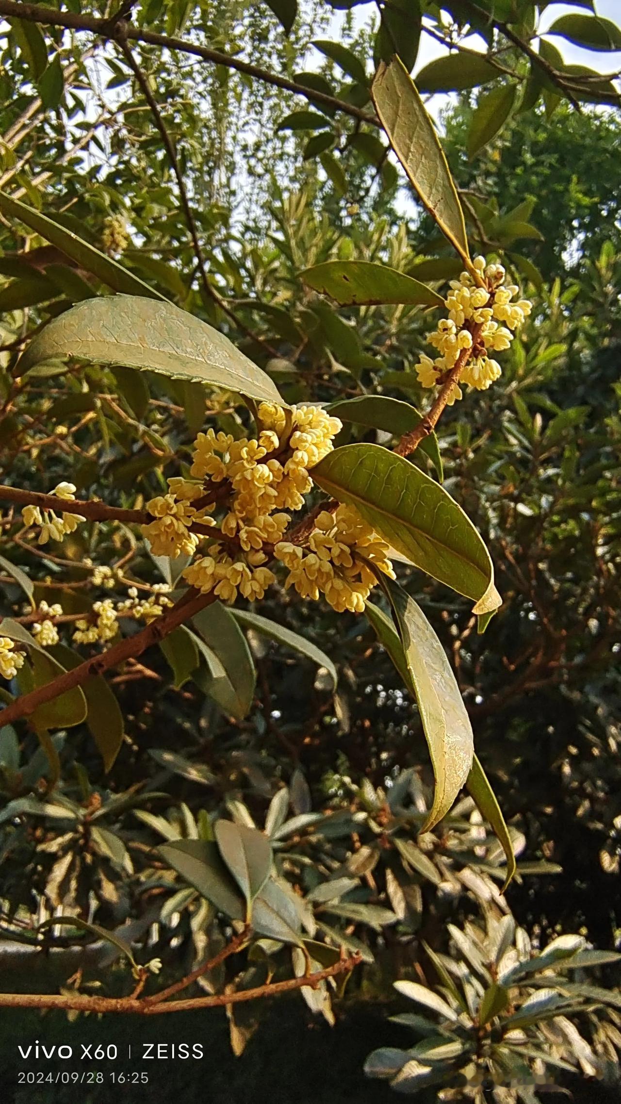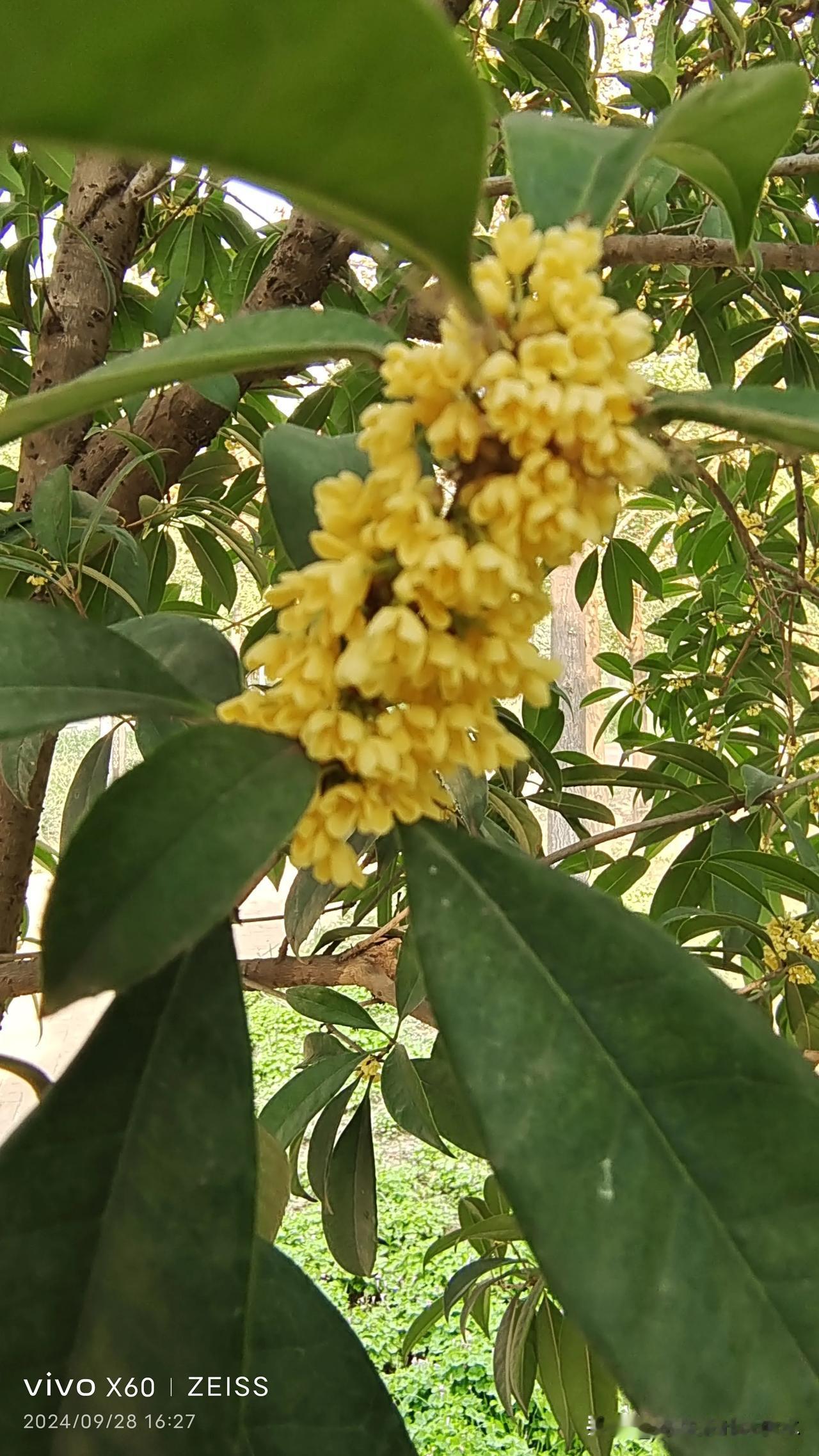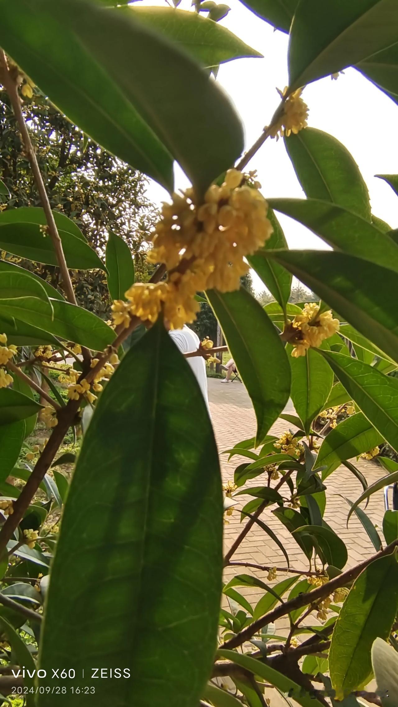 今天下午,在沣西环型公园里,看到桂花开了,空气中弥漫着浓浓的花香味。