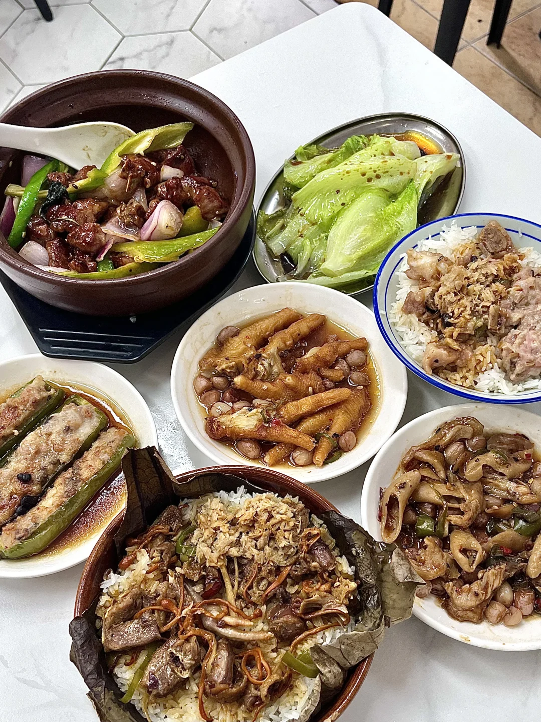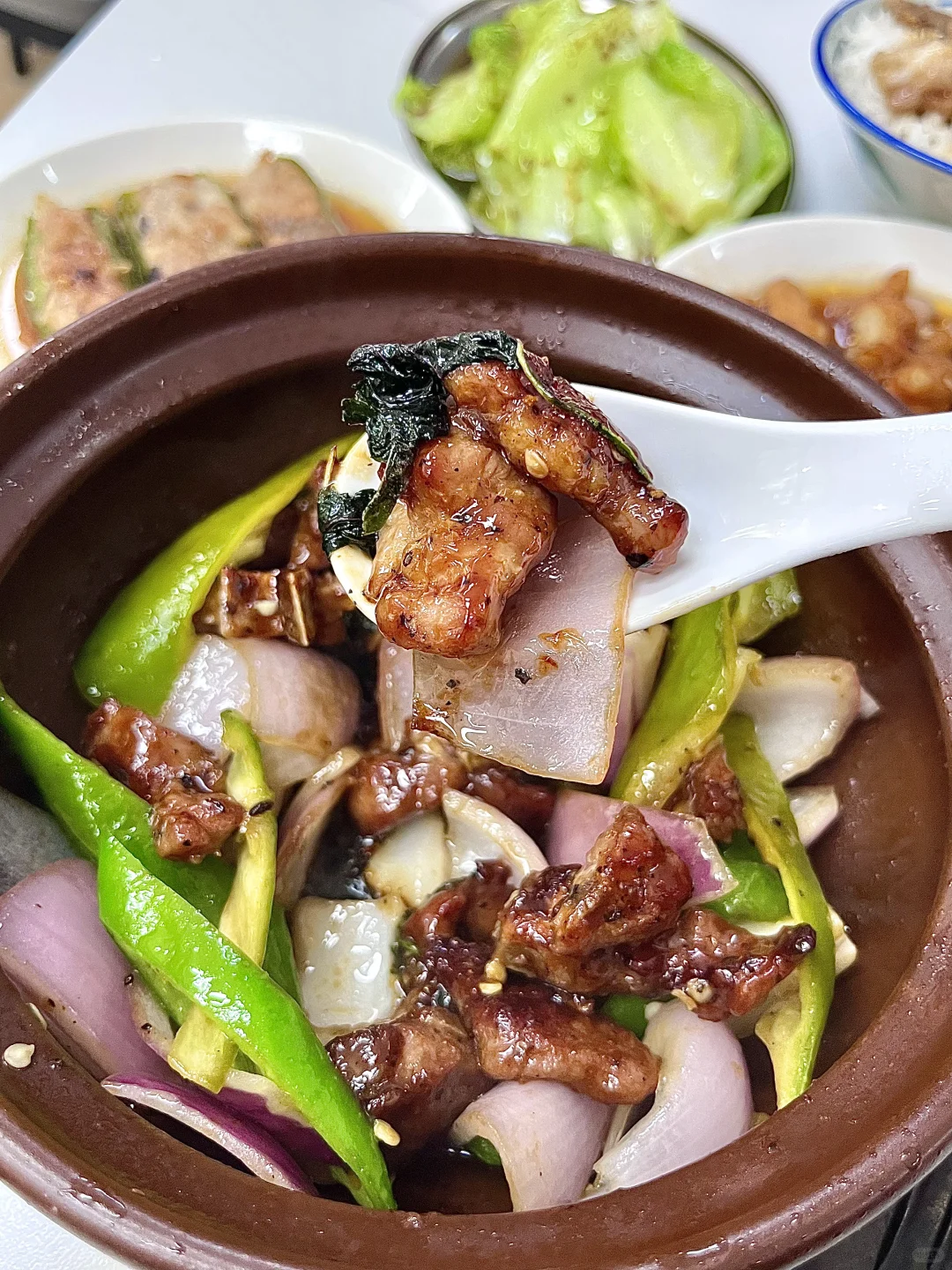 - 📍港口亚拉食店 在利和附近柏苑新村的排骨饭! 大蒸炉菜品好丰富呀😋都是喜欢吃的 - 【排骨肉饼饭】 鸡公碗装一人食正好😋 排骨入味嫩滑,肉饼好下饭啊 【啫啫排骨煲】 滋滋冒烟好镬气🍲浓郁紫苏香 【荷叶鸽子饭】 zui❤️的乳鸽😋很入味下饭 姜蓉捞饭乳鸽小块好好吃! 【酿辣椒】 好好吃!不辣酿肉细腻口感丰富 里面还有treetree的 - 蒸凤爪、蒸肥肠都是10r!好入味软烂 茅根竹蔗水清热😋性价比很高呀! 新晋打工人饭堂 -