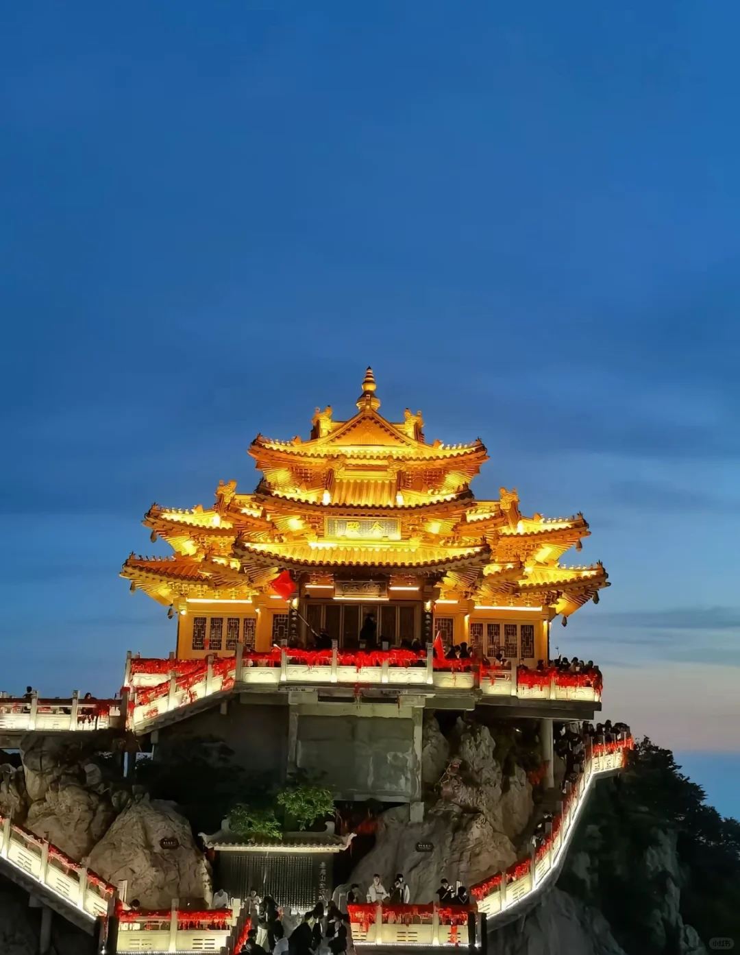 5、峰林索道出口旁栈道→金顶:半小时左右即可登临金顶栈道两旁栏杆上装有灯,金顶亮灯栈道上的灯也会一起亮