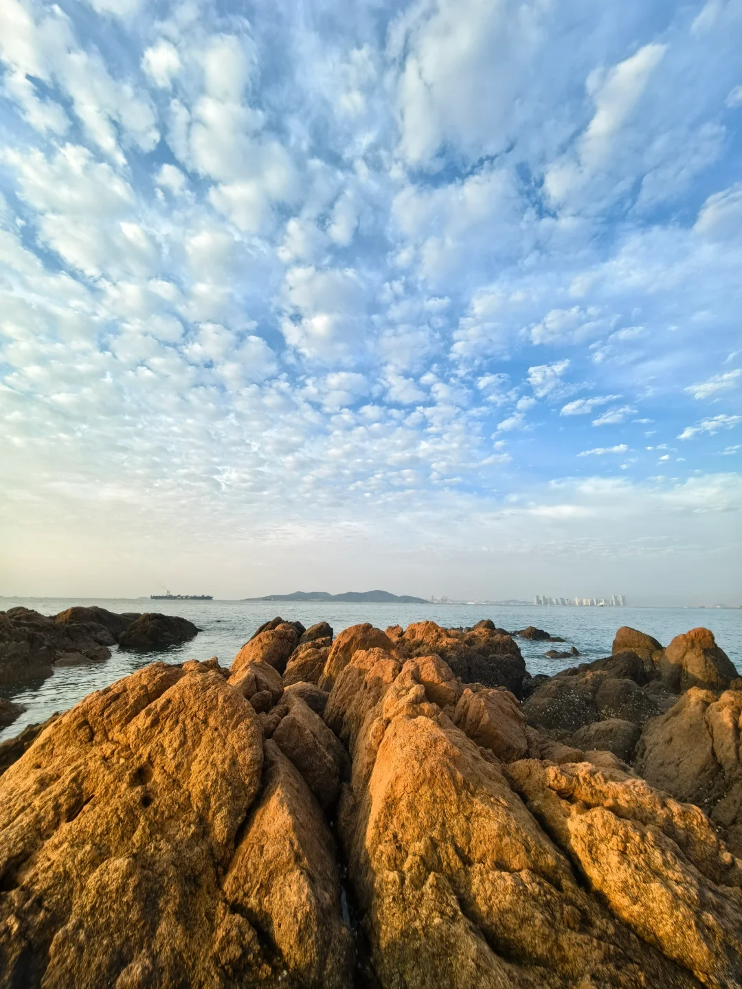 好天气,中午会晒会热,两头舒适。早六点再次来看琴屿路日出,天空的碎云会在太阳升起后不知所踪。