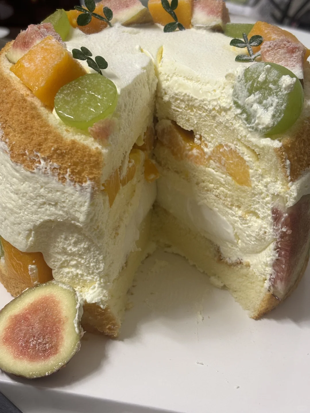 因为我有反流性食管炎 所以不能吃太多奶油🧁 但是生日🎂怎么能不吃蛋糕呢! 最后扒了一款这个款式!奶油不会太多 原版水果用的比较普通我换成了无花果 显得更好看了 夹心是奶冻和芒果🥭 奶冻完全不甜!返流性食管炎患者友好的一款蛋糕🎂 分享给大家
