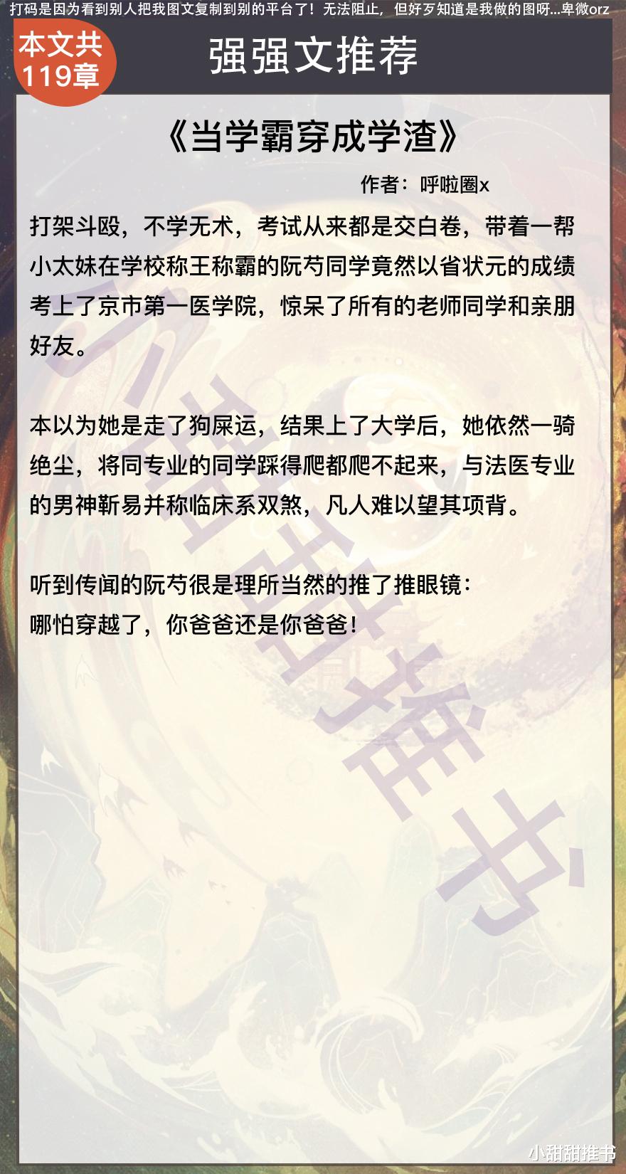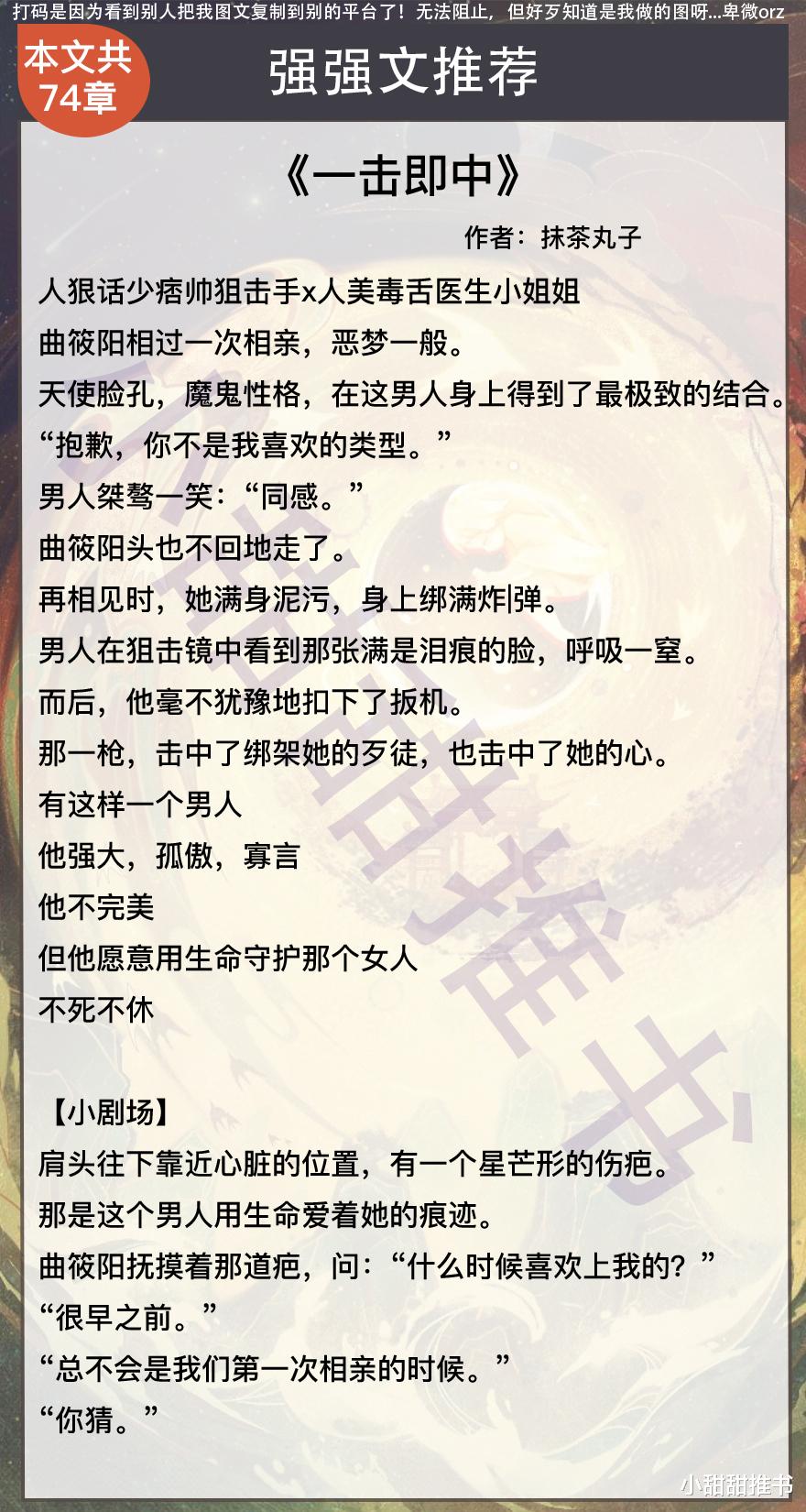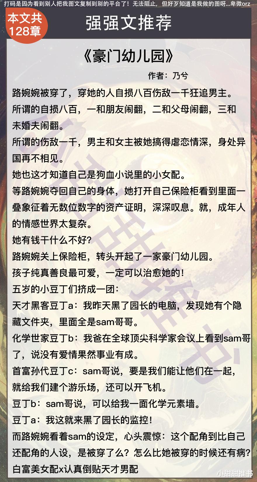 大家好,这期给大家推荐的是6本男强女强甜文小说!穿书文!女配文!