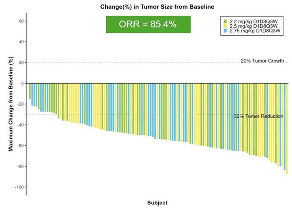 进一步的研究发现,在2.5 mg/kg体重的剂量组中,客观缓解率更是达到了惊人的100%!
