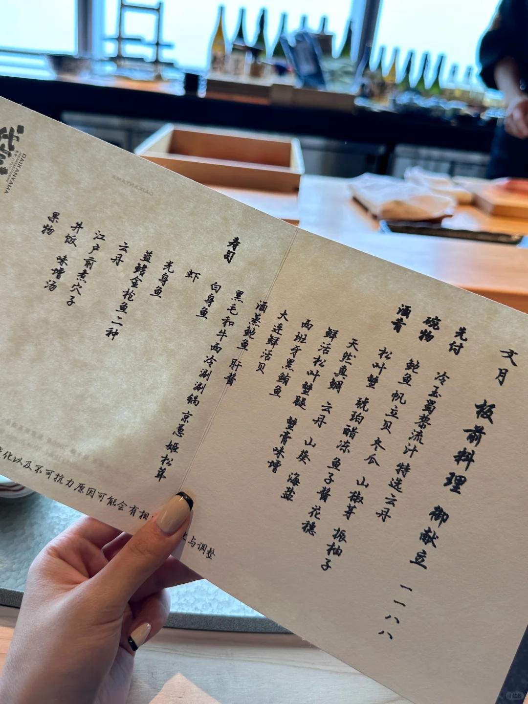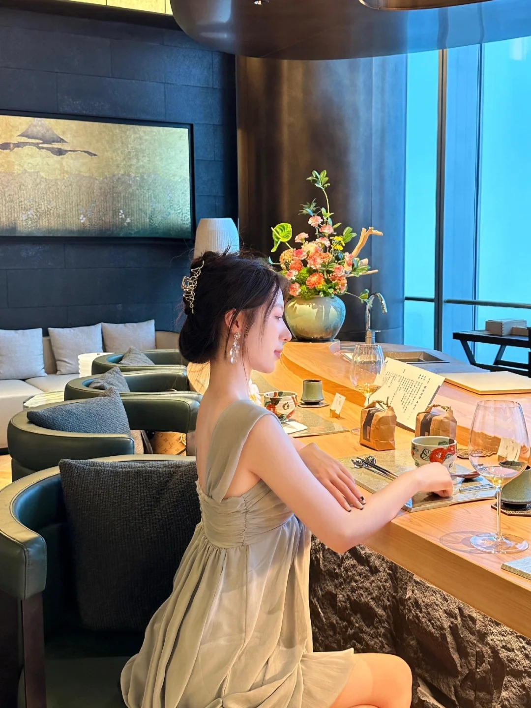又来体验蔡依林同款日料了 🥢 它家就在凯宾斯基酒店的5️⃣2️⃣层 高空用餐 氛围感满满 📍济南最喜欢的一家日料 每道刺身都是由时令新鲜食材 摆盘精致 特别喜欢这种不被定义的菜单 感觉吃每一道刺身都是不同的惊喜 主厨都会细心的介绍每一道食材和吃法 吃omakase 最享受的时刻就是在板前聊天等待食物制作的过程了 氛围超好~👍 这次还喝到了他家的地道手法抹茶🍵 真的很不错 临走还送了超好看的伴手礼 用餐体验真的很棒~
