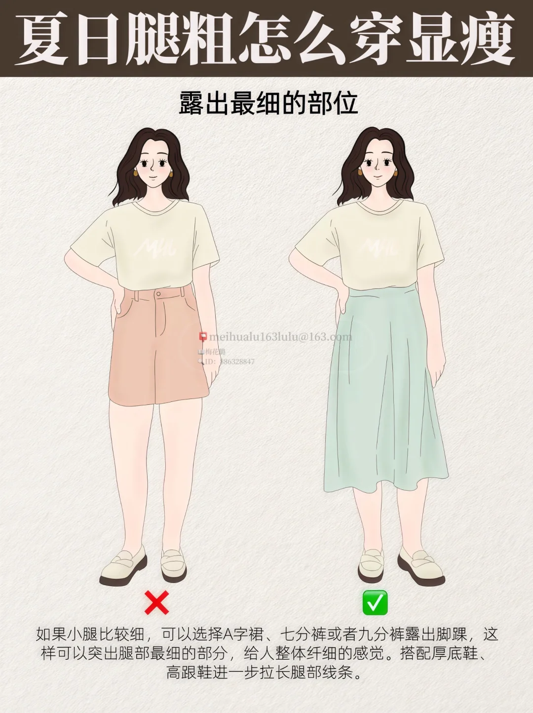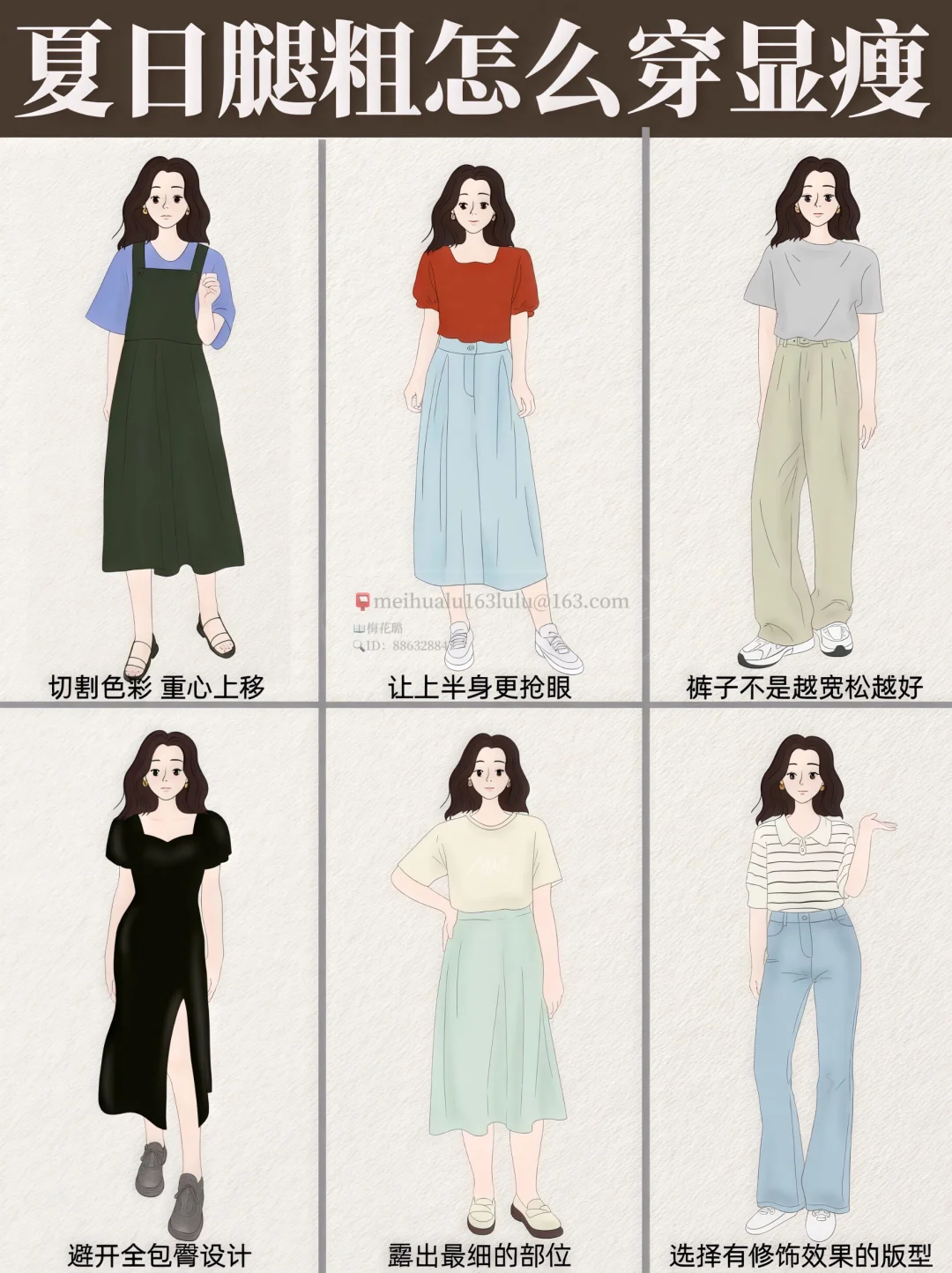🌞🌞🌞夏季女生穿搭对于腿粗的妹子来说,既要遮肉又要显瘦,其实通过巧妙的搭配是完全可以做到的。以下是一些实用的穿搭建议: