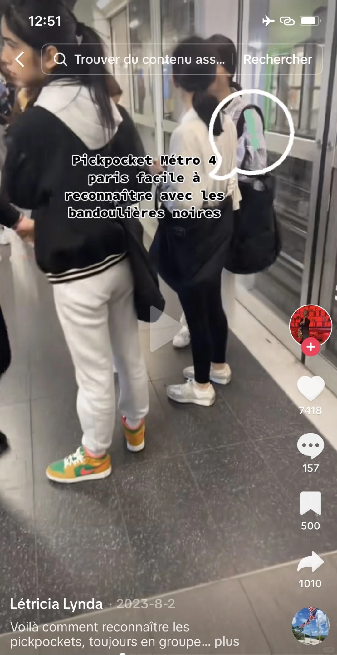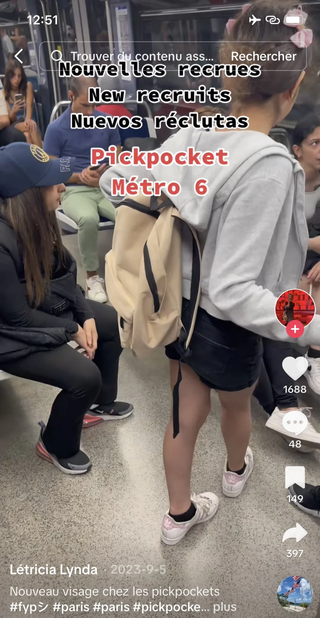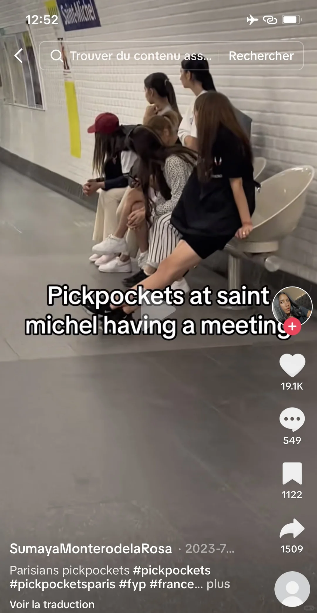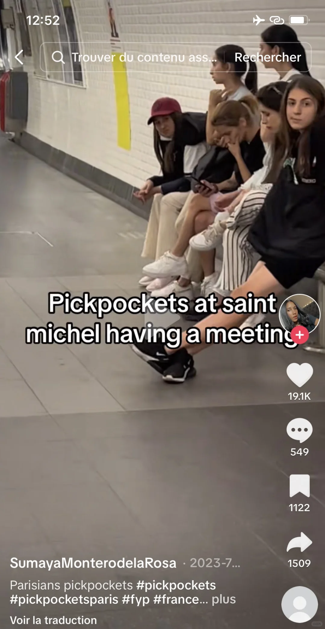 🚨🚨我贴了几张tt上这个群体的图,典型构成是是2-3个中年女的带领四五个teenager女孩 ,特征是背大包/斜挎包,手上拿着连帽hoodie但不穿(偷的时候掩人耳目) 各种颜色的头发,戴帽子/头巾👳 神情鬼鬼祟祟时刻在寻找机会下手(和正常巴黎人在地铁上一副冷漠的dead face形成鲜明对比)