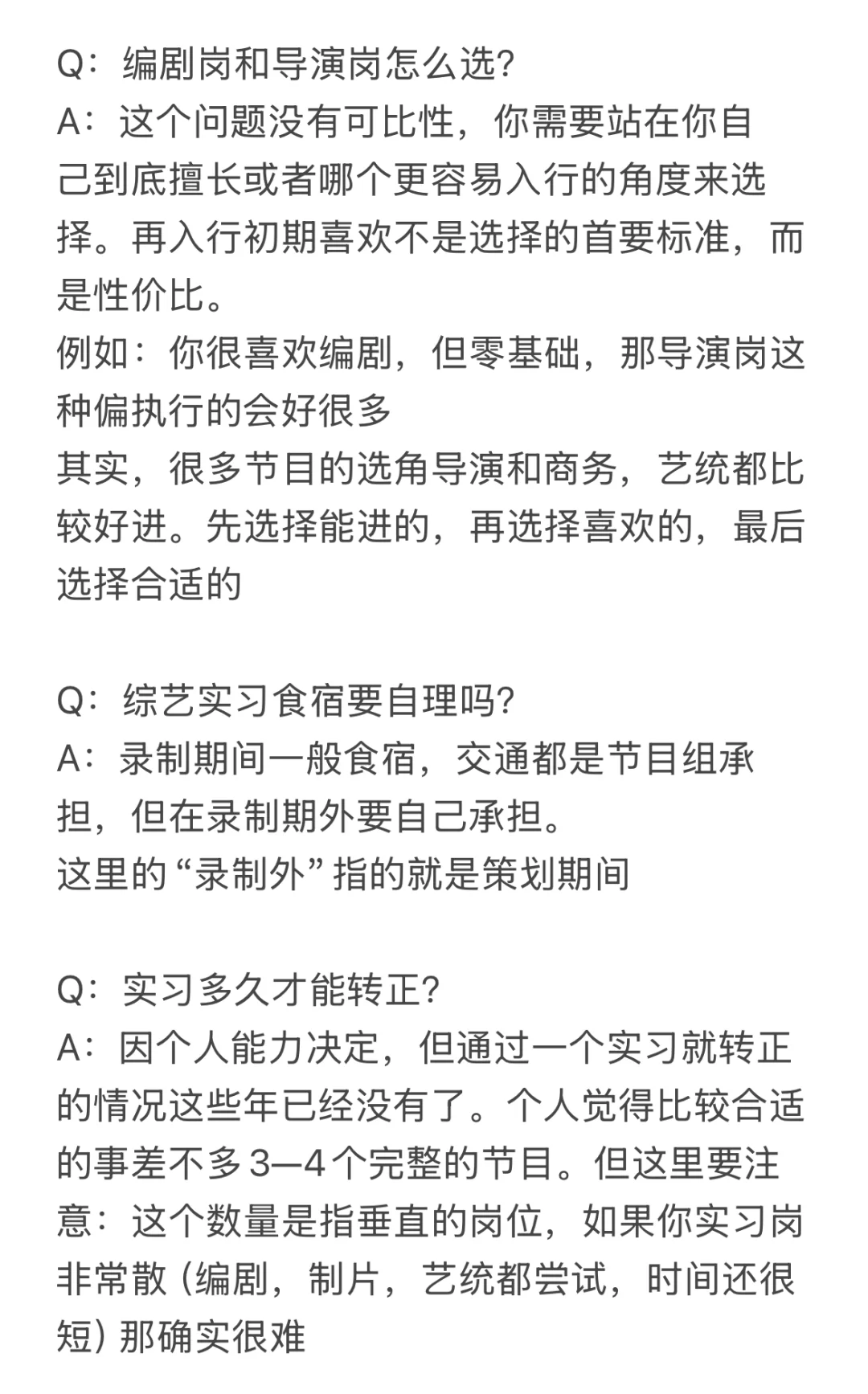 例如:你很喜欢编剧,但零基础,那导演岗这种偏执行的会好很多,所以并不是仅限于这两个