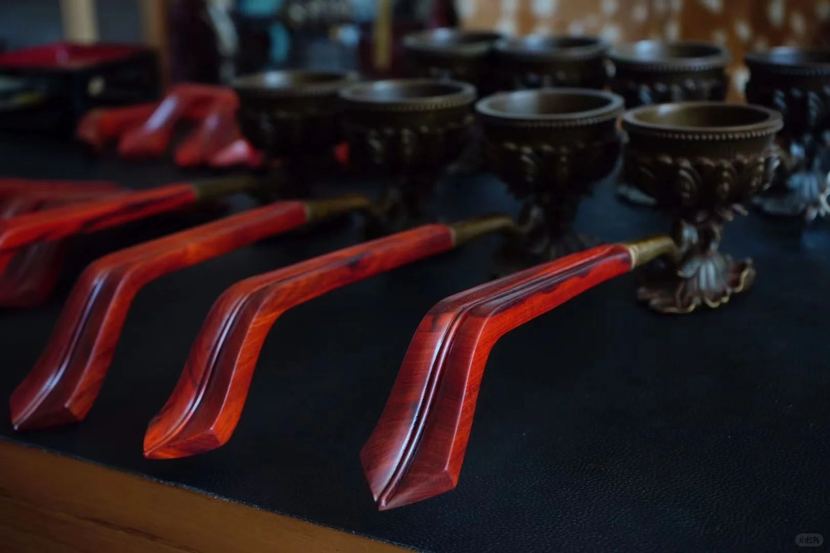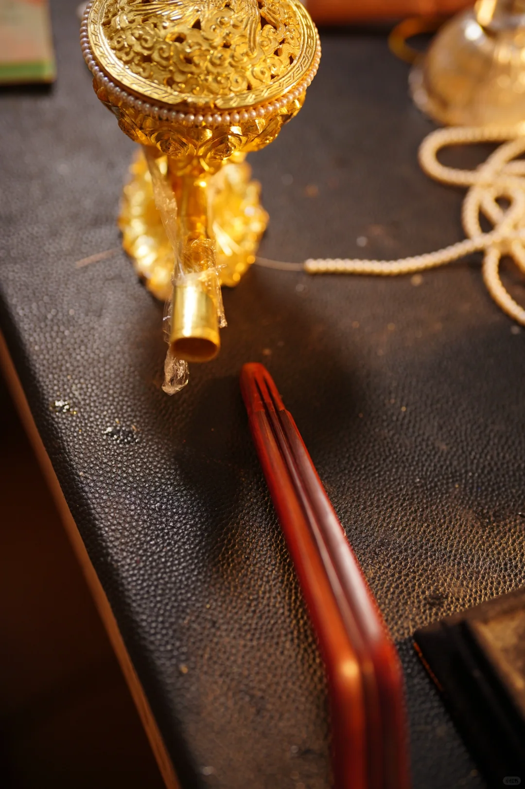 到了年纪就喜欢金灿灿的东西 手工錾刻的 檀木手柄