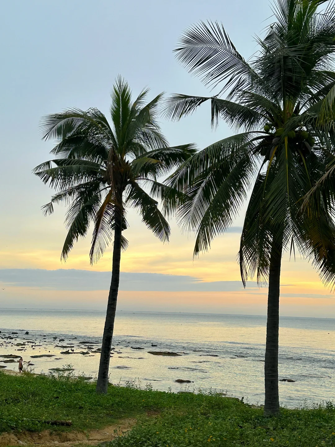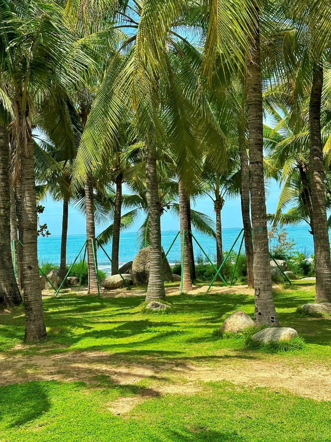➋海滨浴场:天气好能看到渐变色果冻海,沙滩和椰林度假感十足,可以捡到很多奇形怪状的珊瑚;