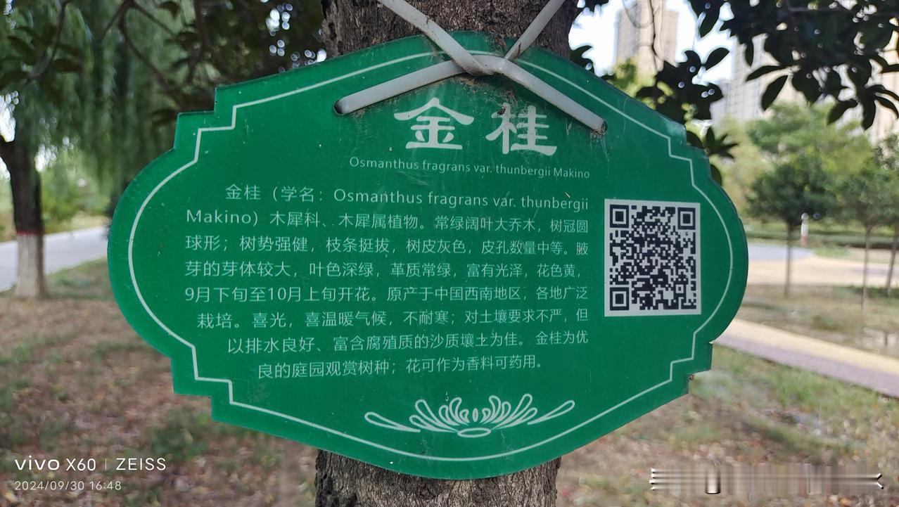 下午,在古渡廊桥南头东面,有的桂花开了,比如,丛生桂花、四季桂花。但有的还没开,比如,金桂、银桂、丹桂,标牌简介说,九月下旬一十月上旬开花,鉴于今年气候,那只有等等看了。