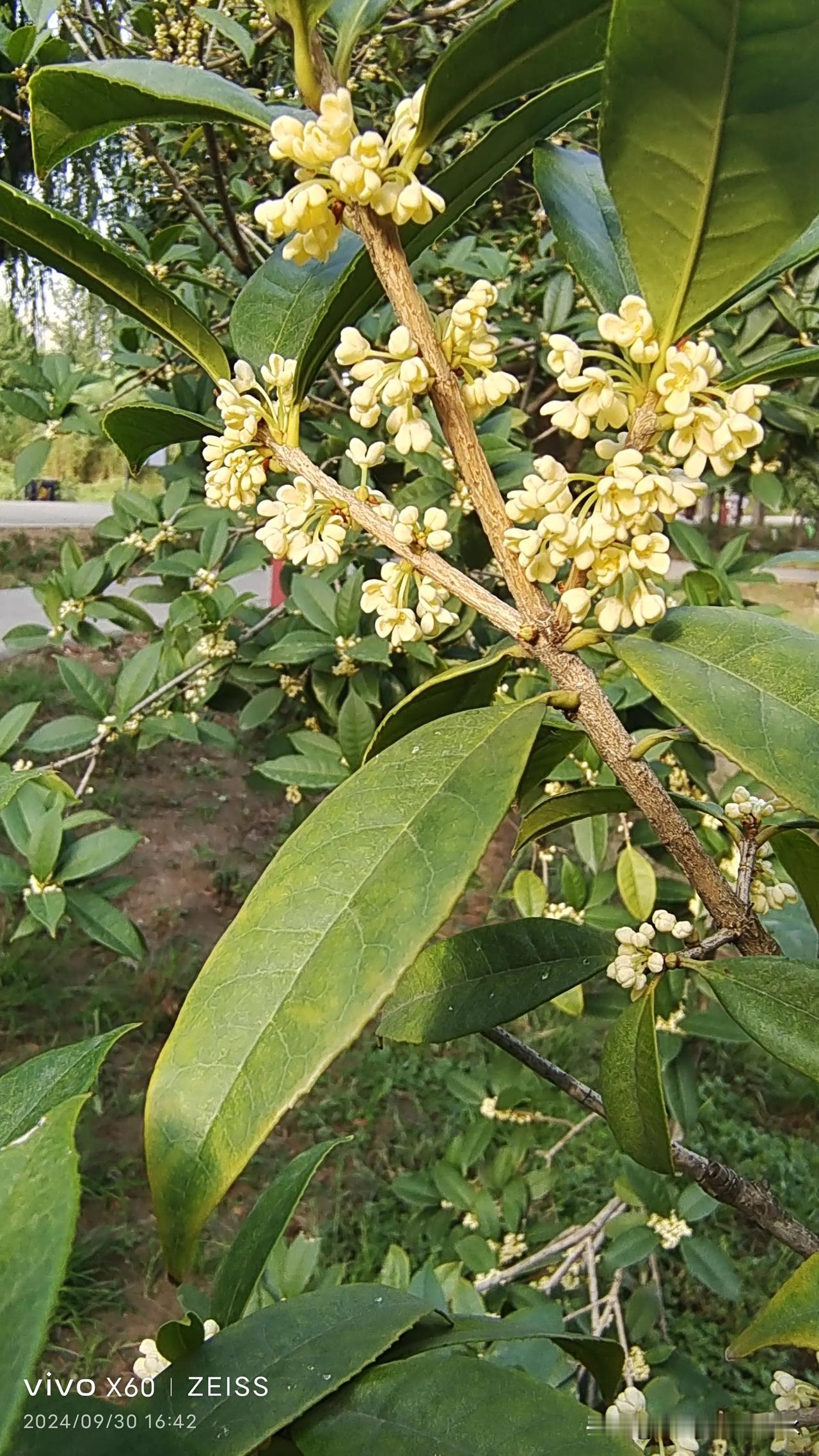 下午,在古渡廊桥南头东面,有的桂花开了,比如,丛生桂花、四季桂花。但有的还没开,