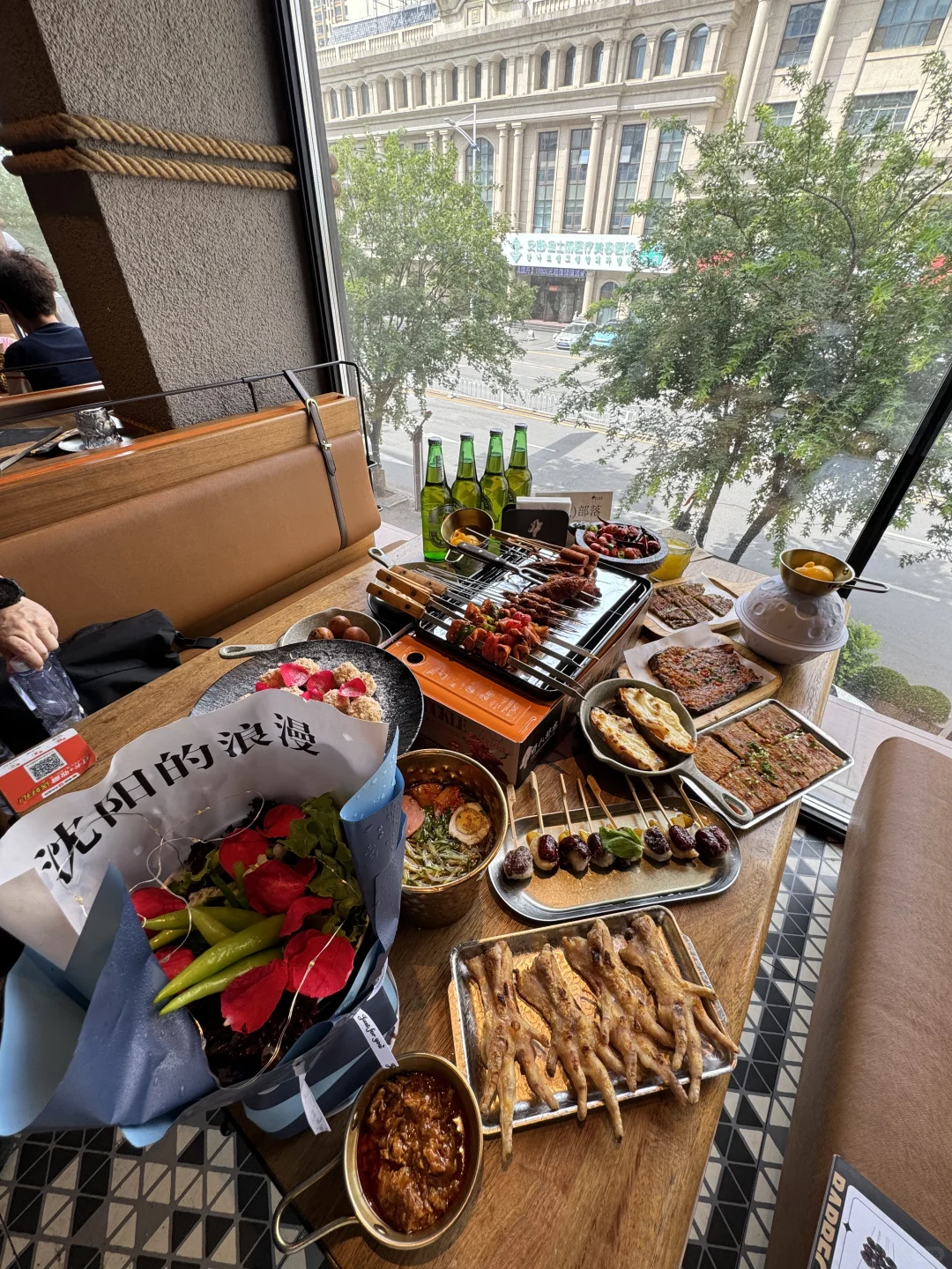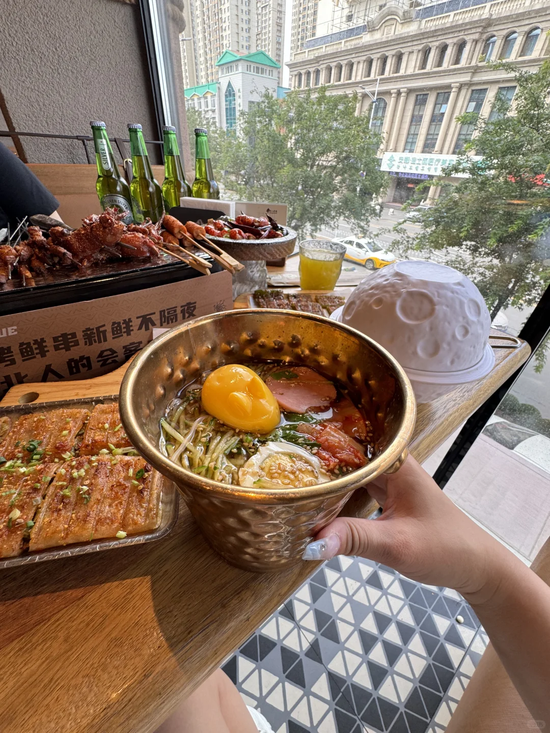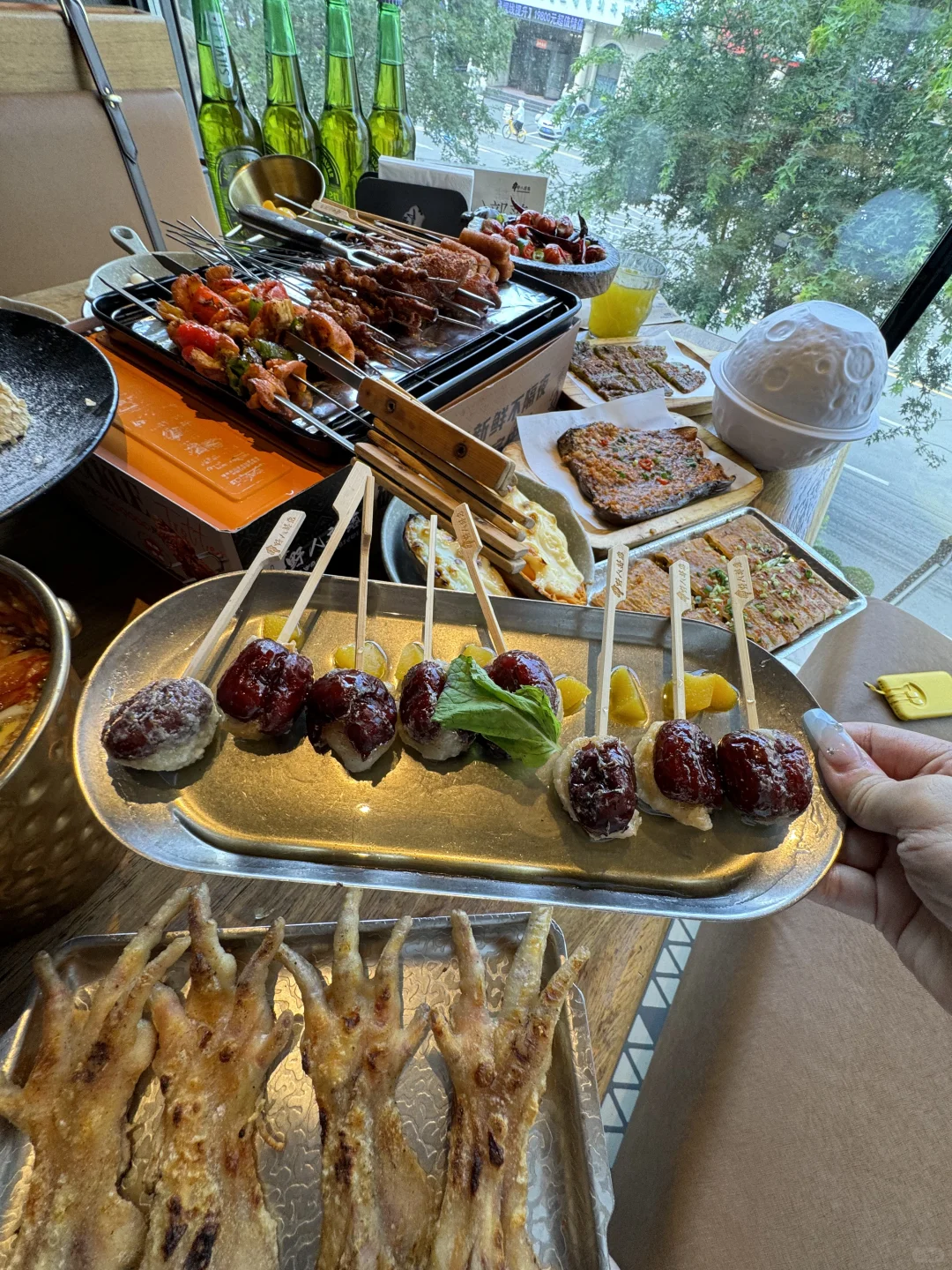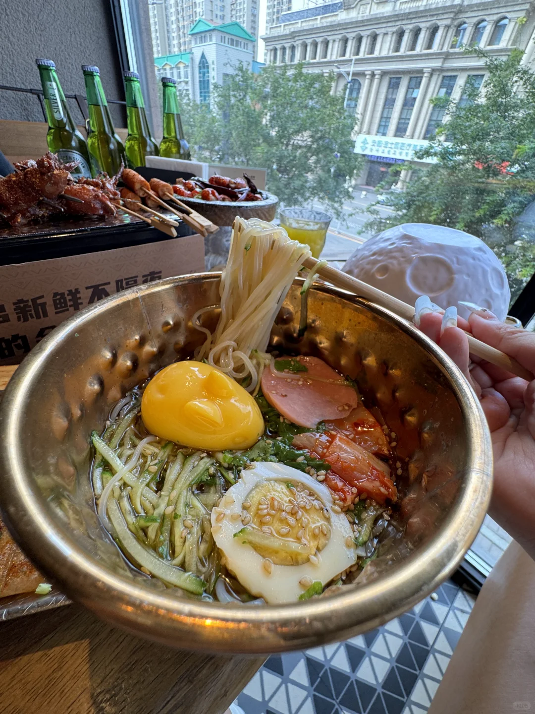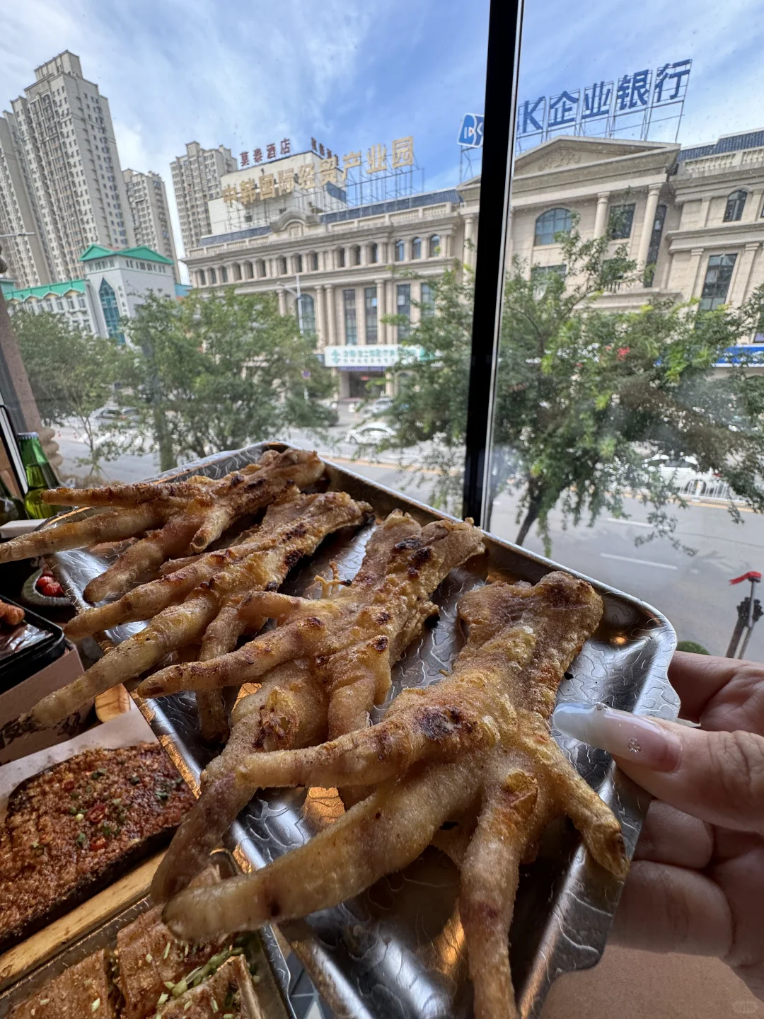 东北烤串!盐焗鸡爪!冷面! 窗外还挺好看呢!