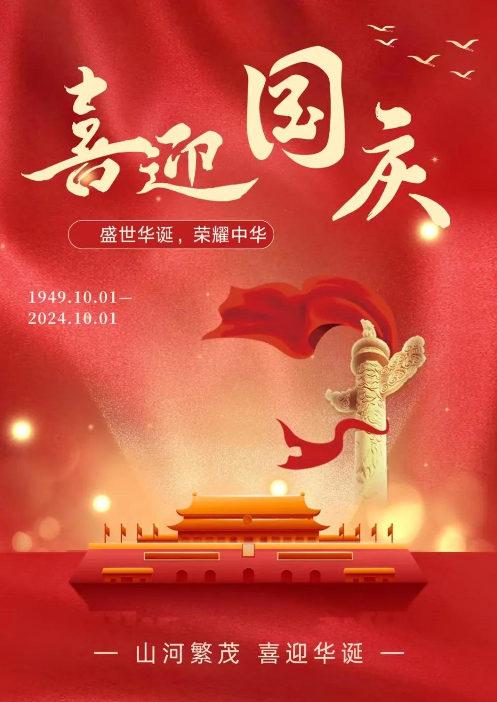 [烟花] ²⁰²⁴/₁₀𛲔₁ 🇨🇳国庆节 [烟花] 🇨🇳红旗飘扬,皆为信仰🇨🇳 ❤盛世华章,共谱辉煌❤ ㊗国安家安,繁荣昌盛🎉 #愿喜迎国庆# #十一国庆祝福到# #欢喜庆国庆# #国庆节祝福!# #十一国庆节# #国庆节#