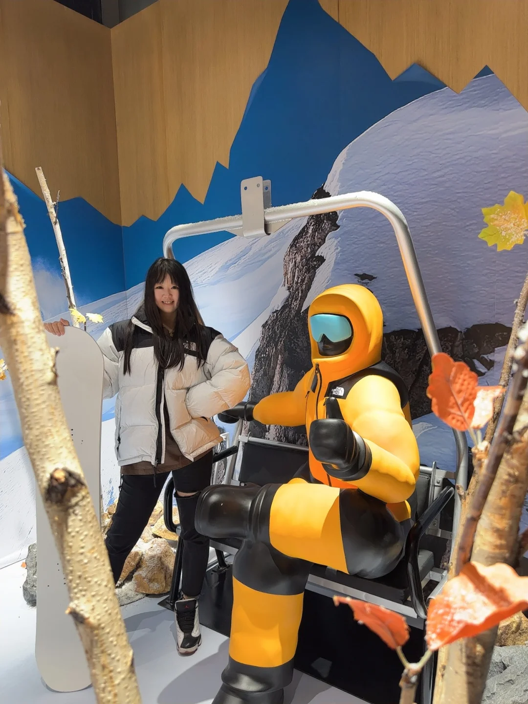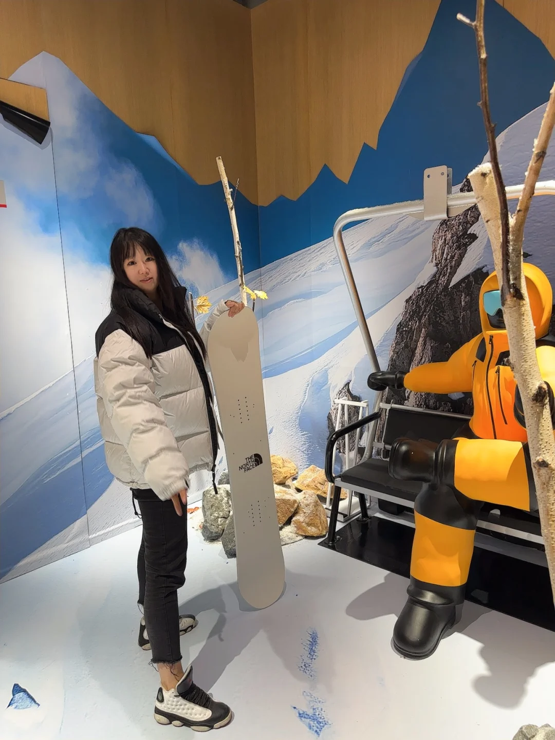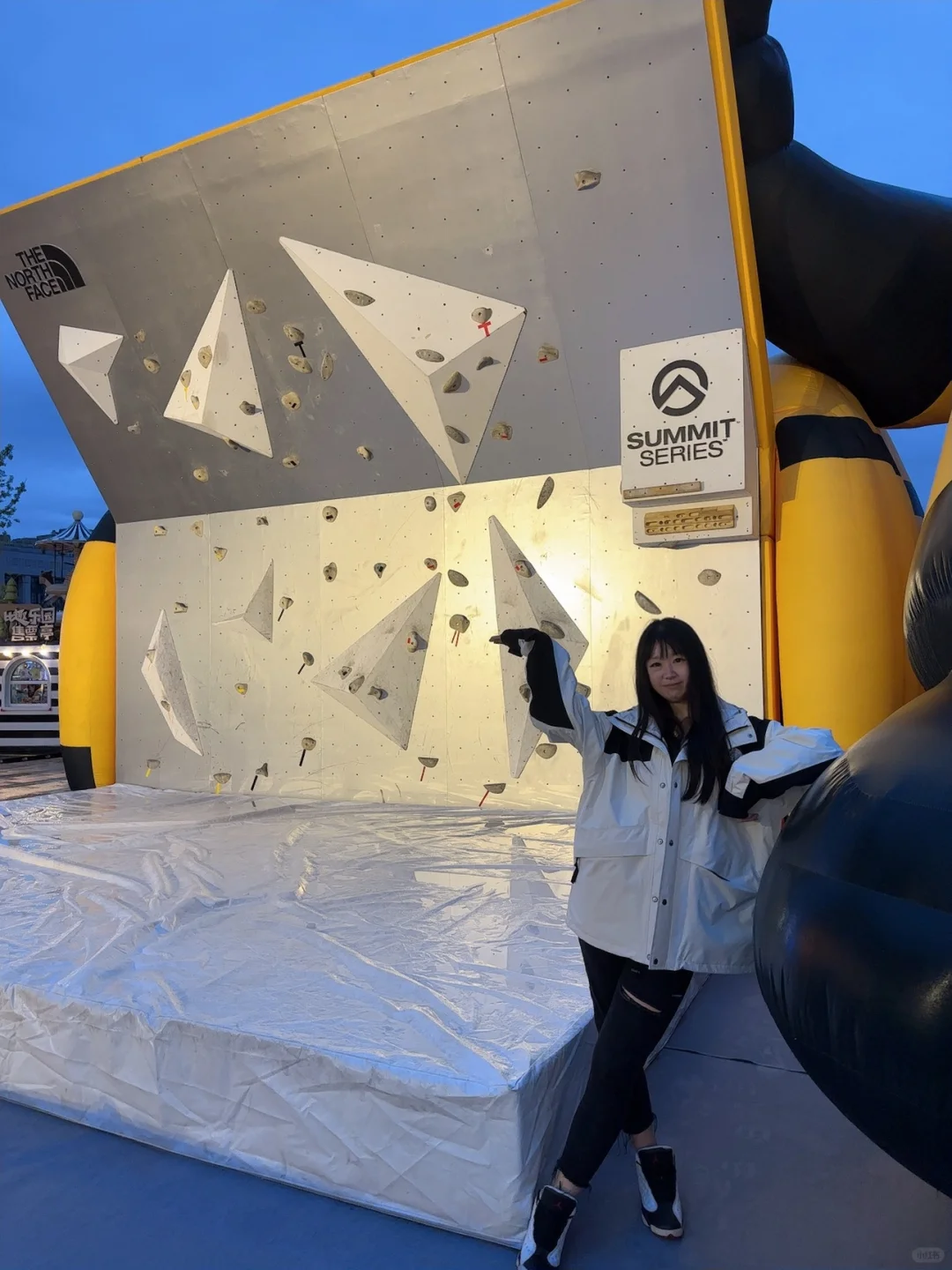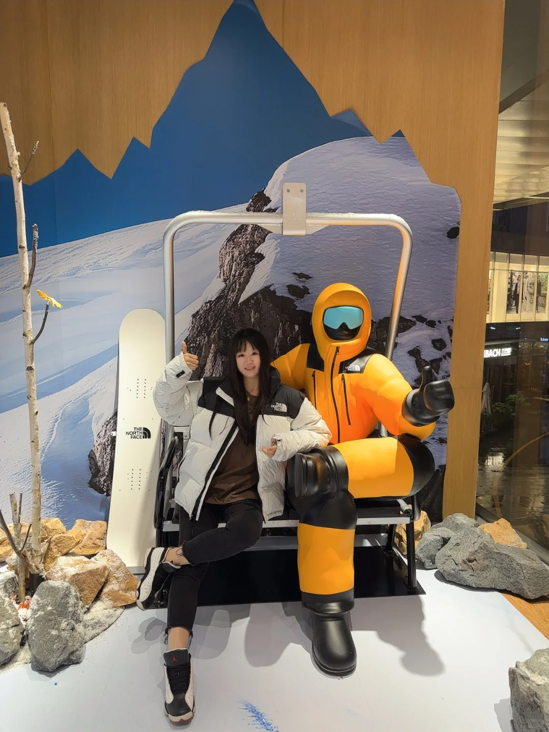 北面北面!!你太会了吧!! 太原速冻入秋,正在纠结买个冲锋衣,这不就来啦!! 选了心心念念的白黑配色,还玩了绳结🪢游戏,挑战了一把攀岩🧗🏻♀️就在万象城广场!大大大大的大黄人,绝对不会错过‼️有礼物哦🫧 从大黄人还能看到二楼的小黄人,店里已经是冬季滑雪风🏂🏻啦!!试了件羽绒服!怎么说!!喜欢‼️