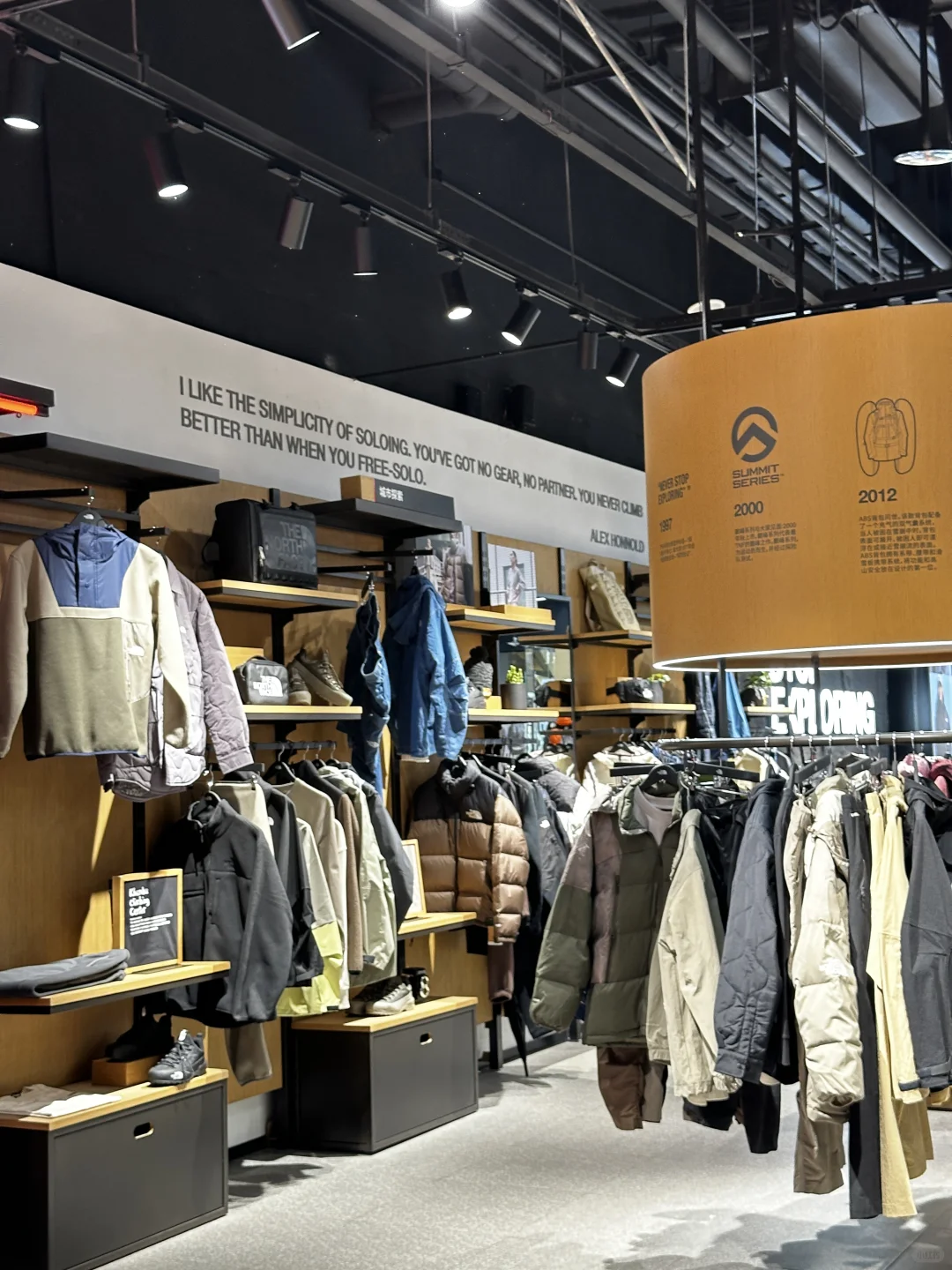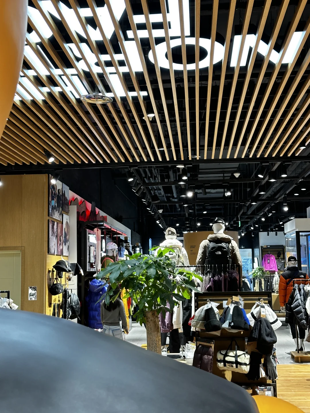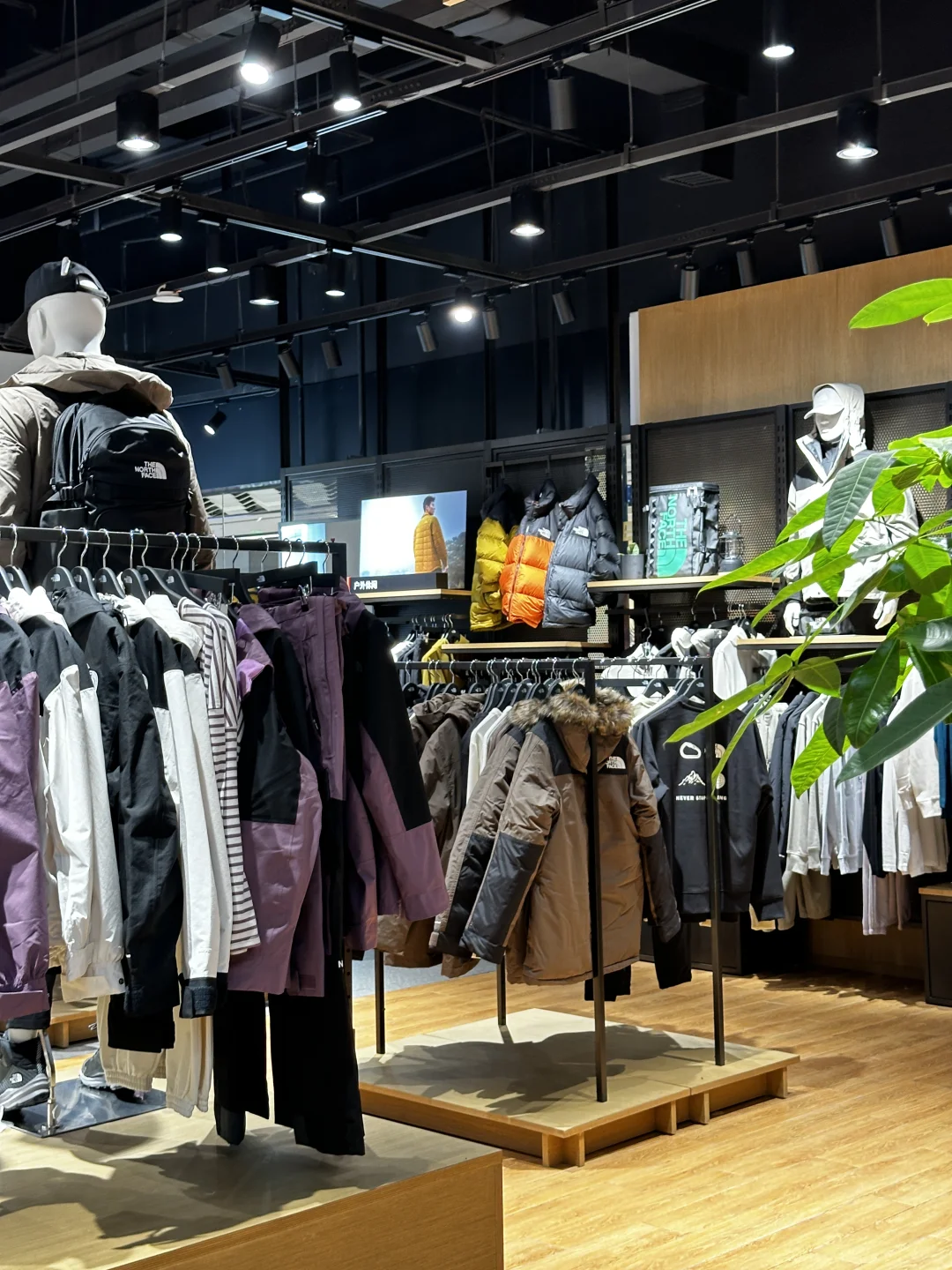 北面北面!!你太会了吧!! 太原速冻入秋,正在纠结买个冲锋衣,这不就来啦!! 选了心心念念的白黑配色,还玩了绳结🪢游戏,挑战了一把攀岩🧗🏻♀️就在万象城广场!大大大大的大黄人,绝对不会错过‼️有礼物哦🫧 从大黄人还能看到二楼的小黄人,店里已经是冬季滑雪风🏂🏻啦!!试了件羽绒服!怎么说!!喜欢‼️