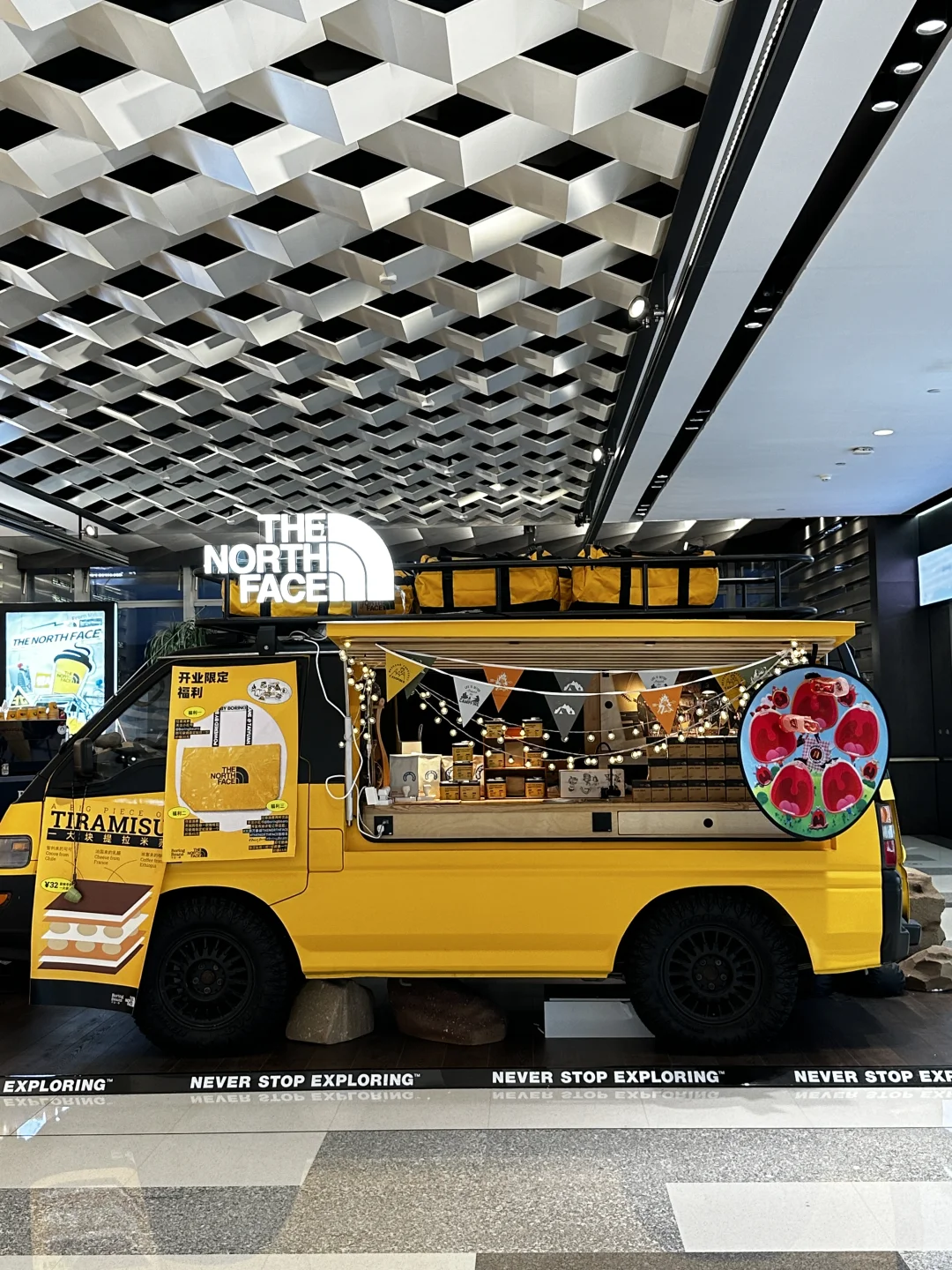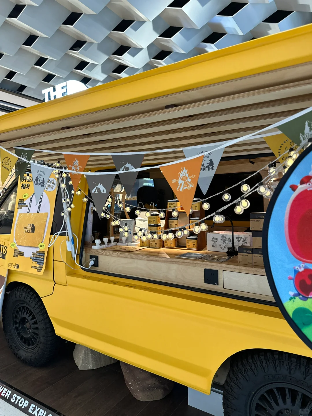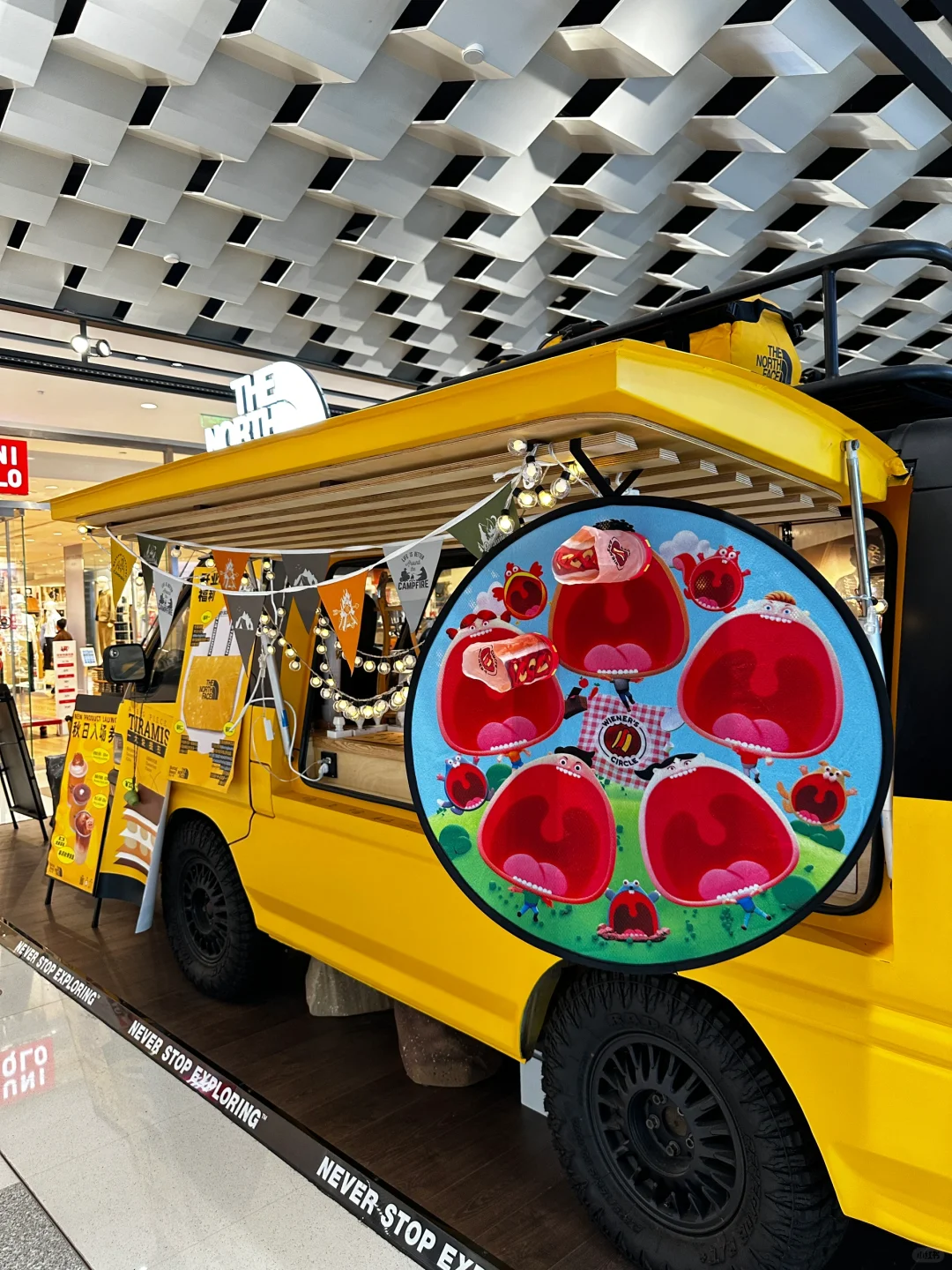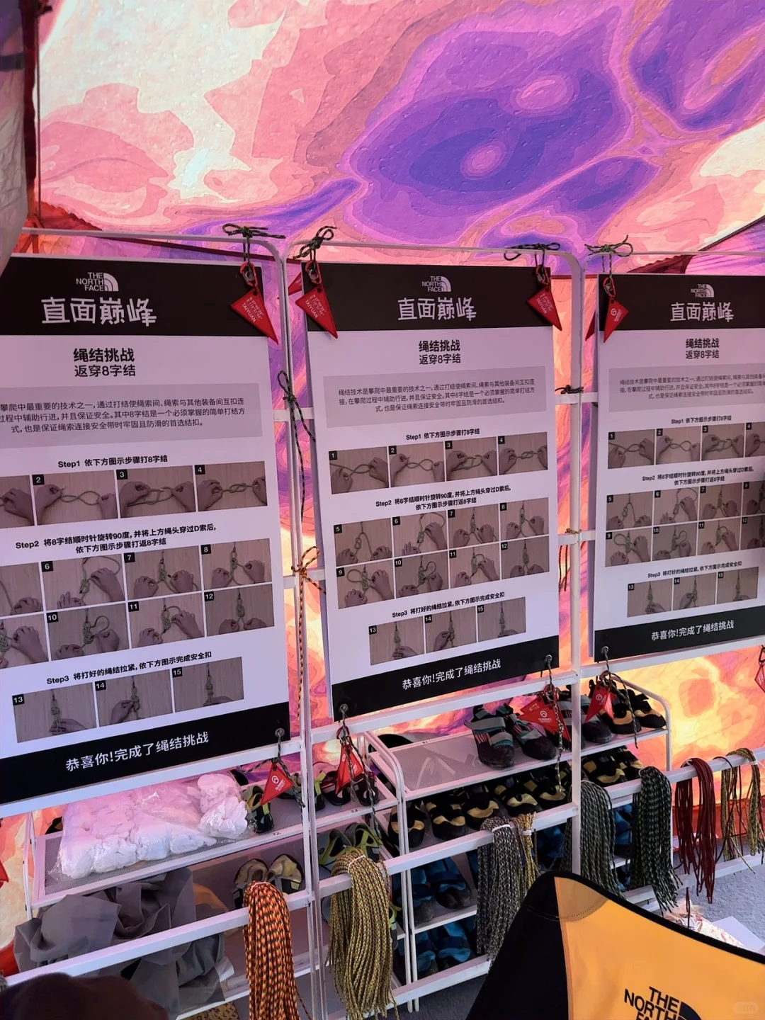 北面北面!!你太会了吧!! 太原速冻入秋,正在纠结买个冲锋衣,这不就来啦!! 选了心心念念的白黑配色,还玩了绳结🪢游戏,挑战了一把攀岩🧗🏻♀️就在万象城广场!大大大大的大黄人,绝对不会错过‼️有礼物哦🫧 从大黄人还能看到二楼的小黄人,店里已经是冬季滑雪风🏂🏻啦!!试了件羽绒服!怎么说!!喜欢‼️