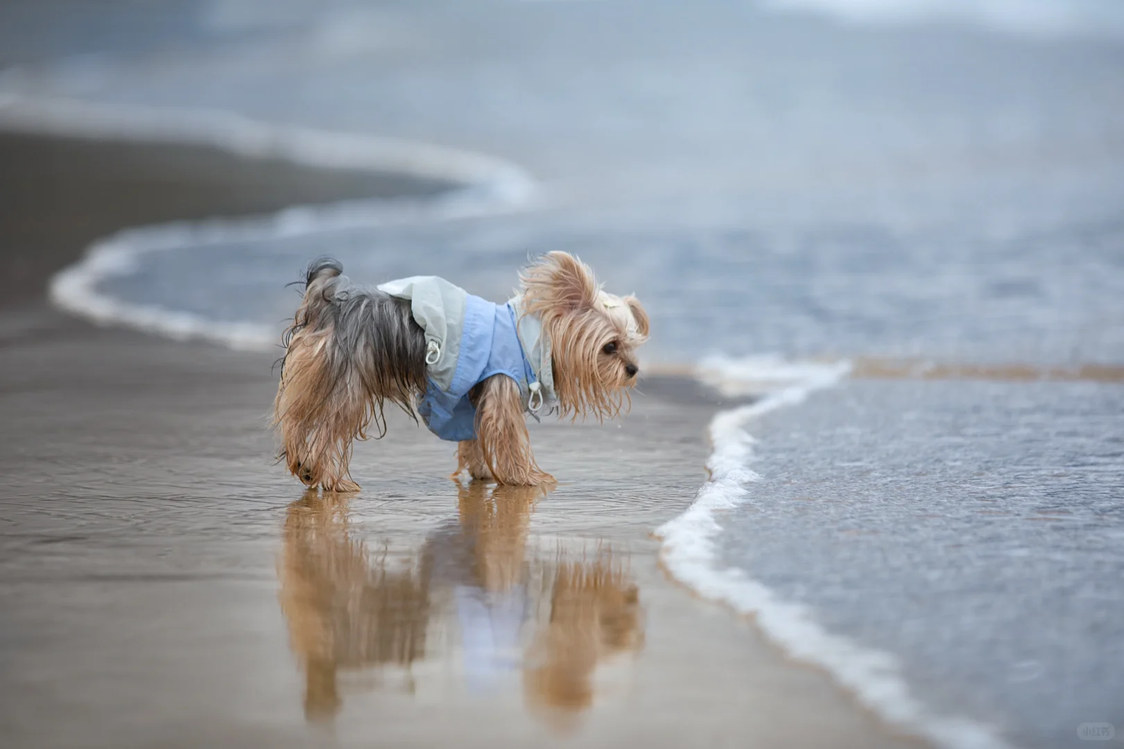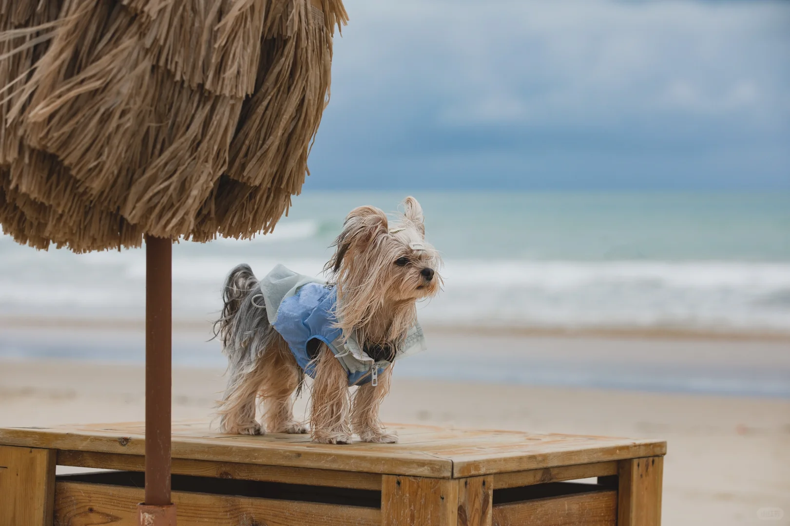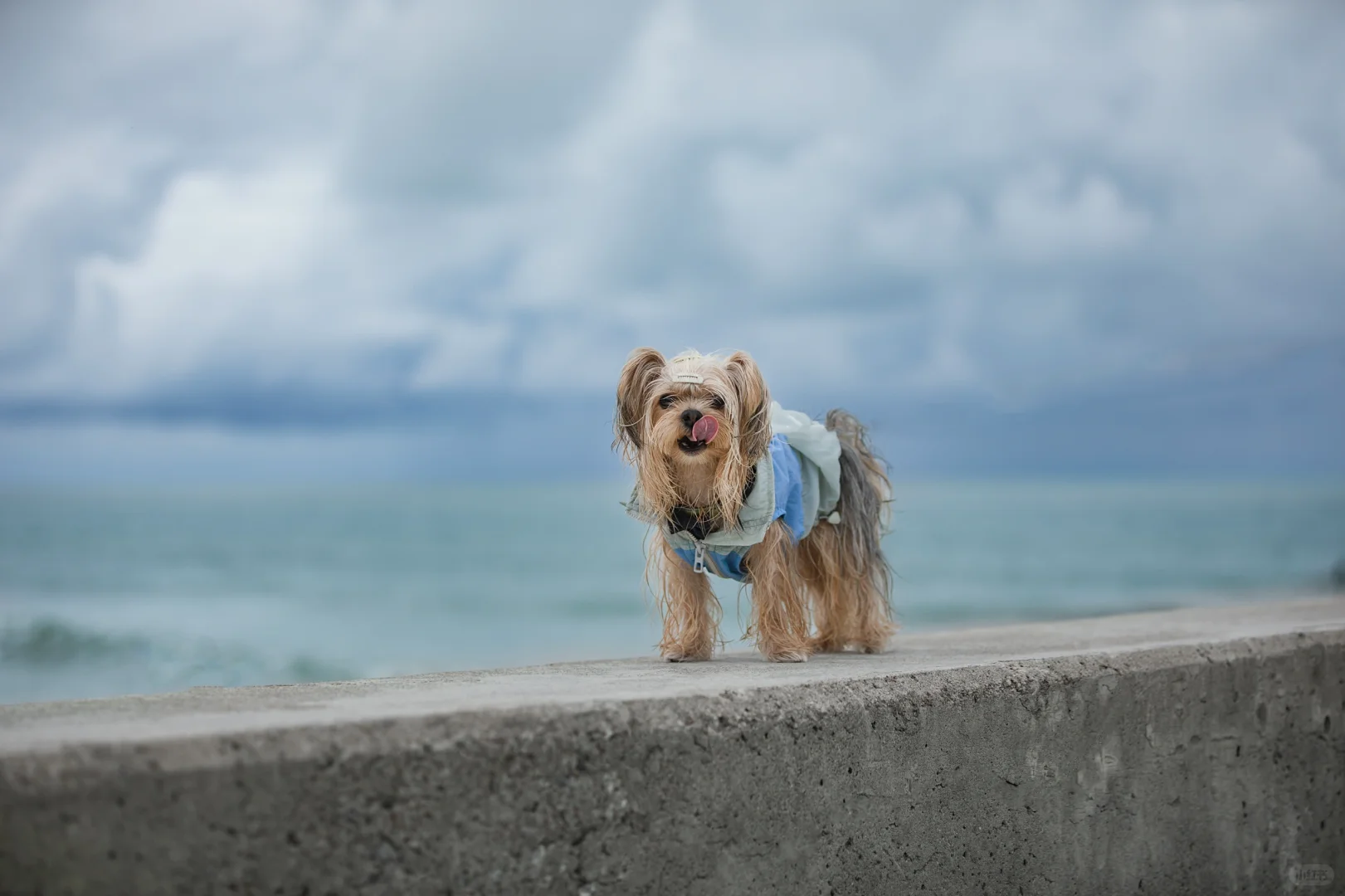 阴天的海边搭配潦草小狗