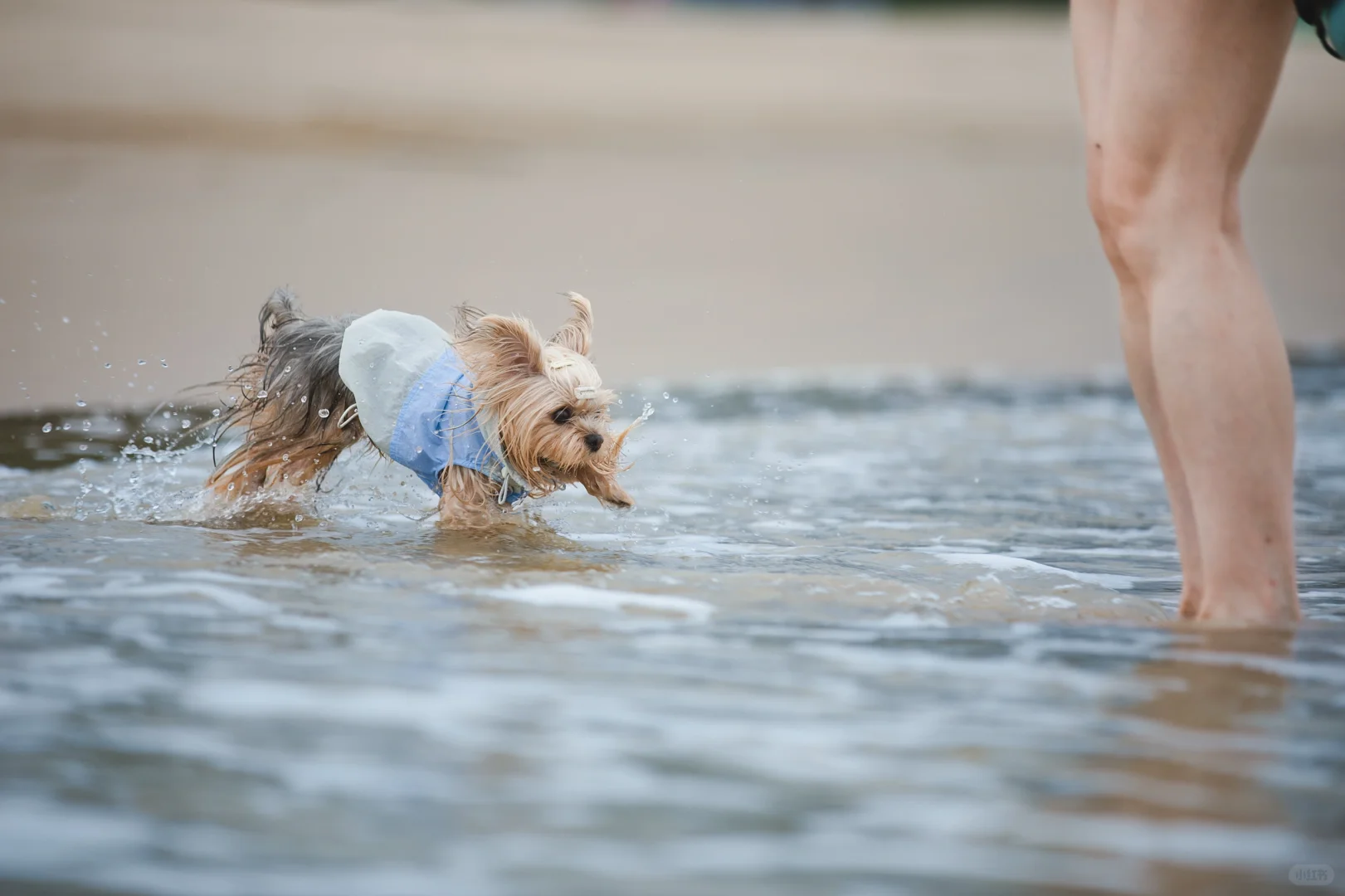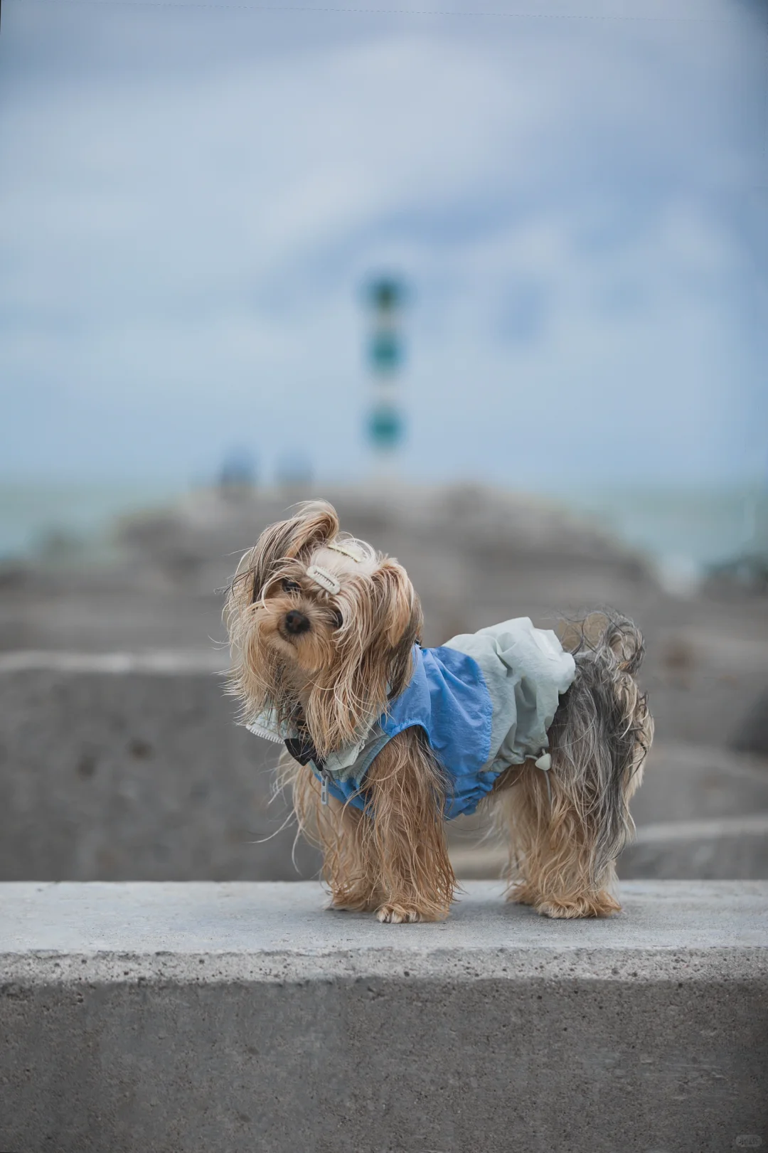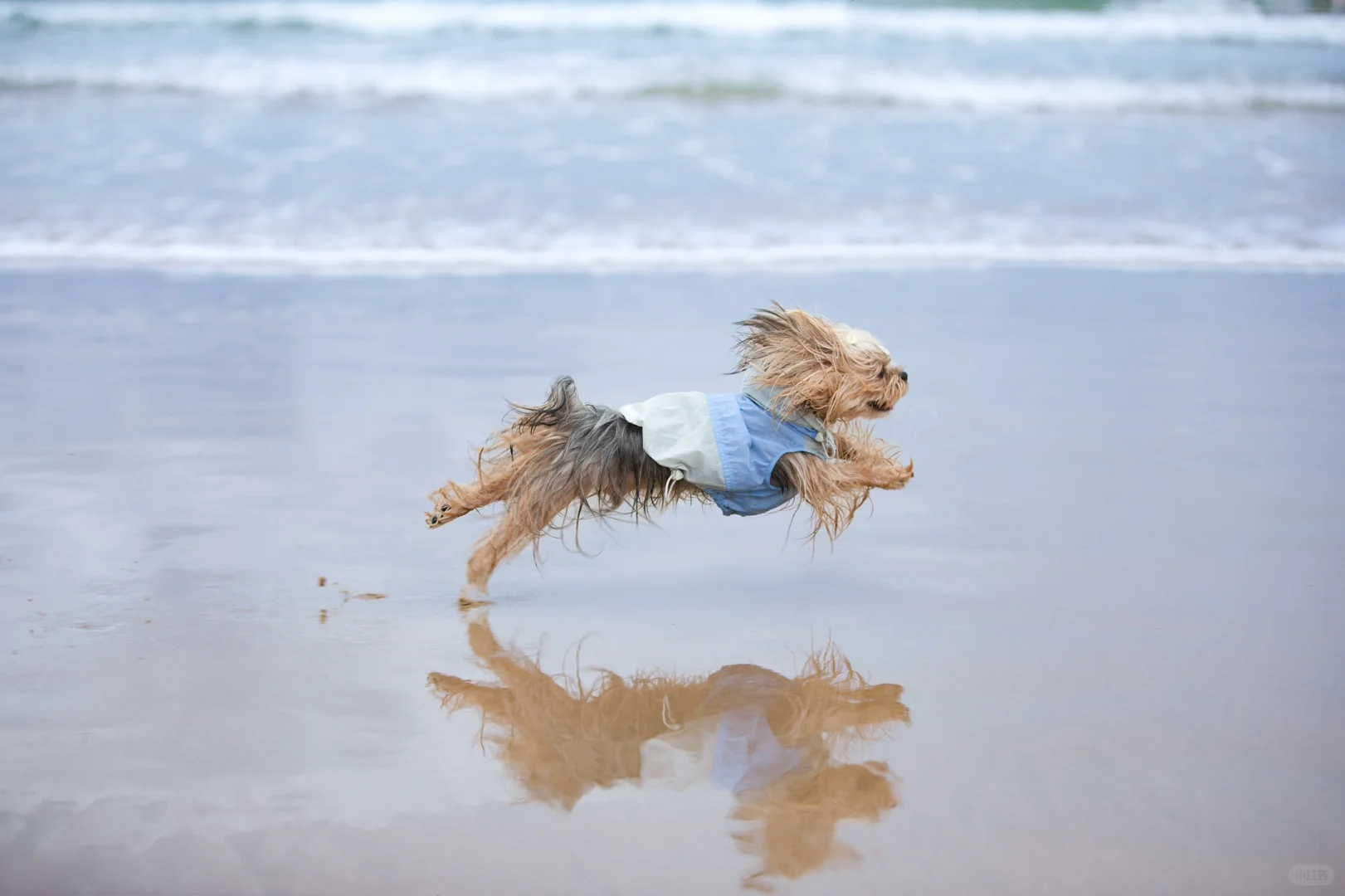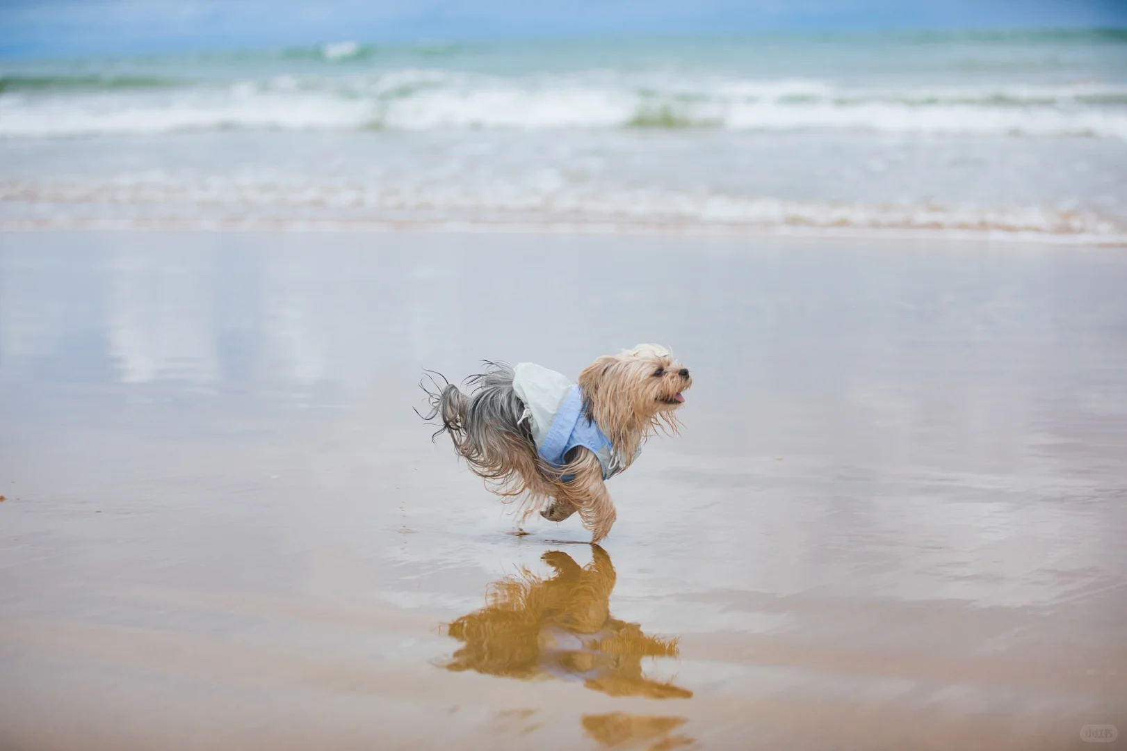 阴天的海边搭配潦草小狗