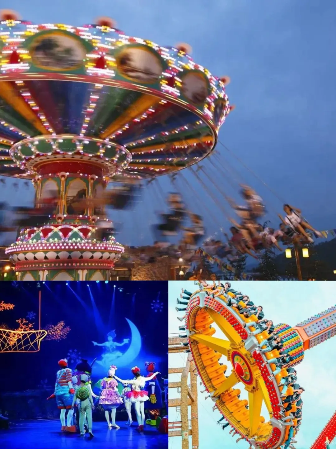 夜游的话,可以在梦幻谷与idol一起嬉水狂欢、在广州街·香港街听着港风disco吃着夜宵、到梦外滩享受露营躺平音乐会的惬意玩夜场的户外游乐设施,到花厅好旺夜市品尝明星同款美食……