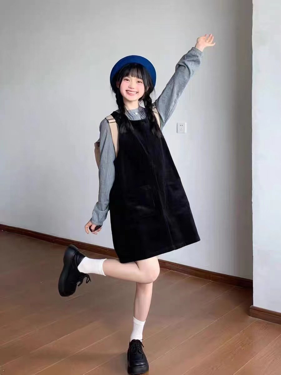 2024新款小个子黑色背心吊带连衣裙