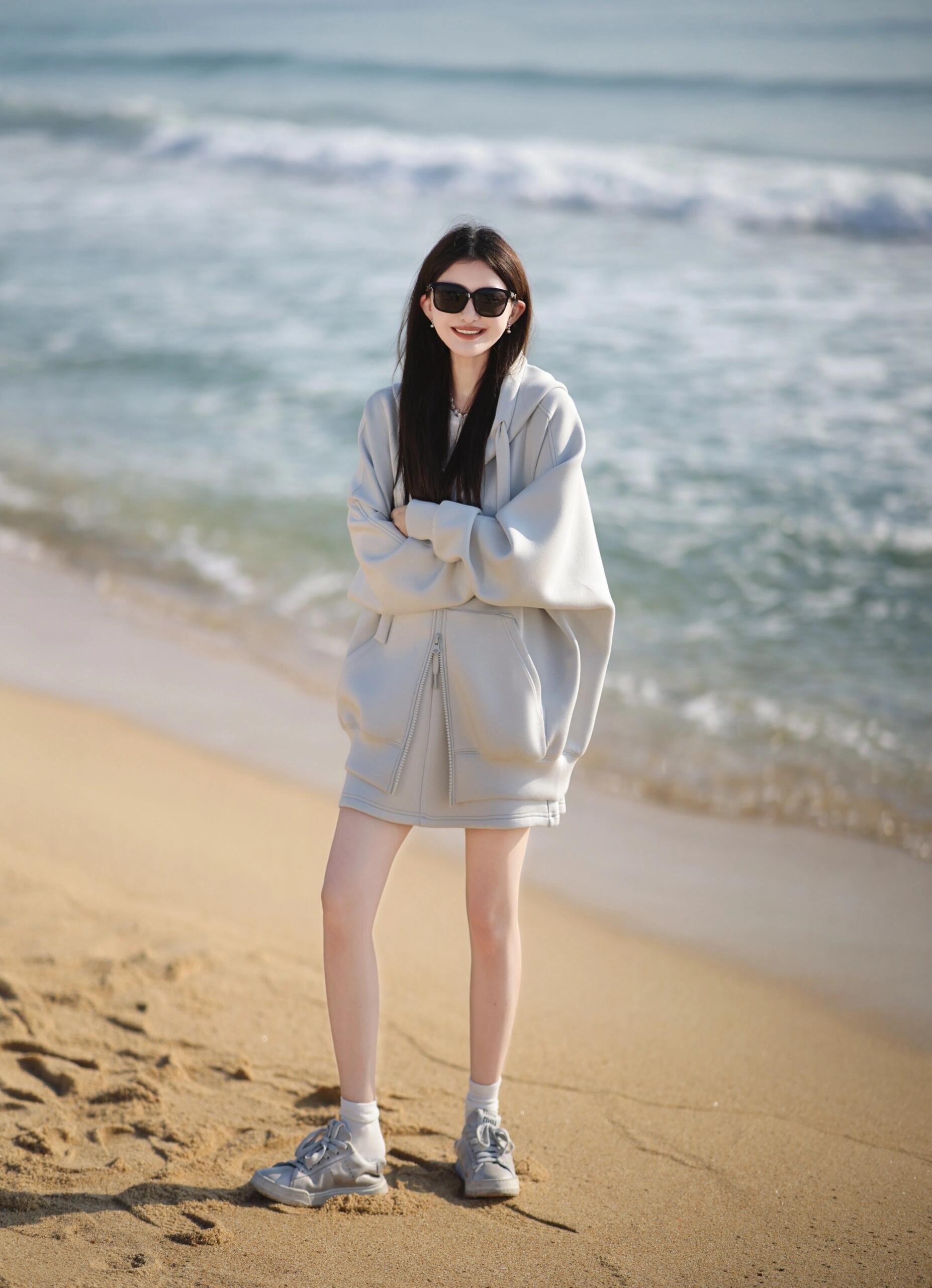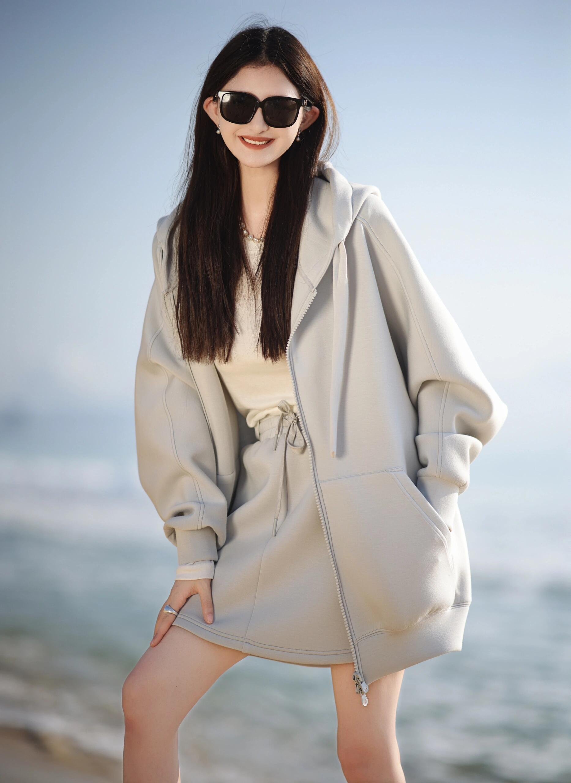 早秋季蓝色连帽卫衣连衣裙小个子女2024新款气质入秋一整套装穿搭