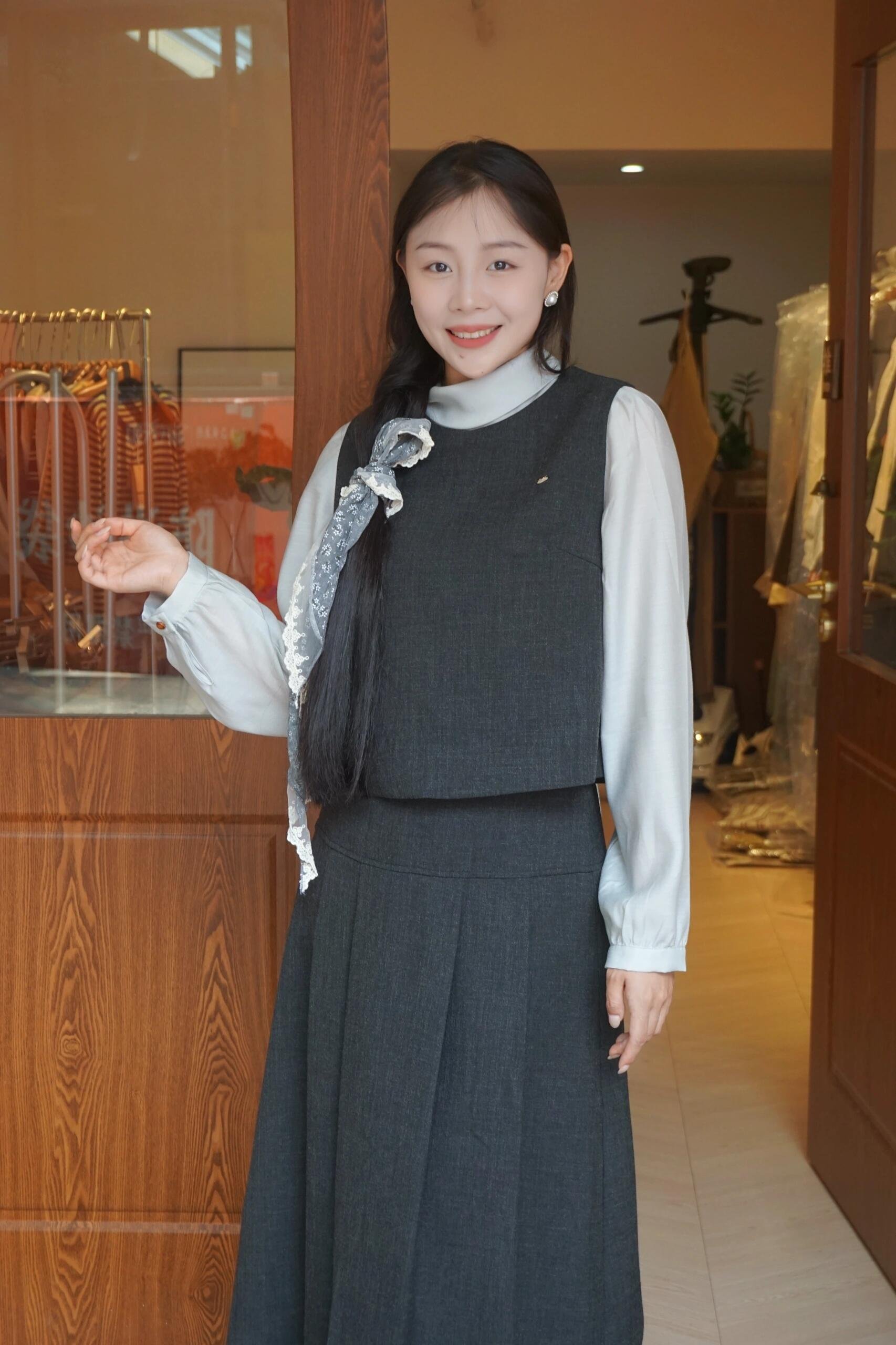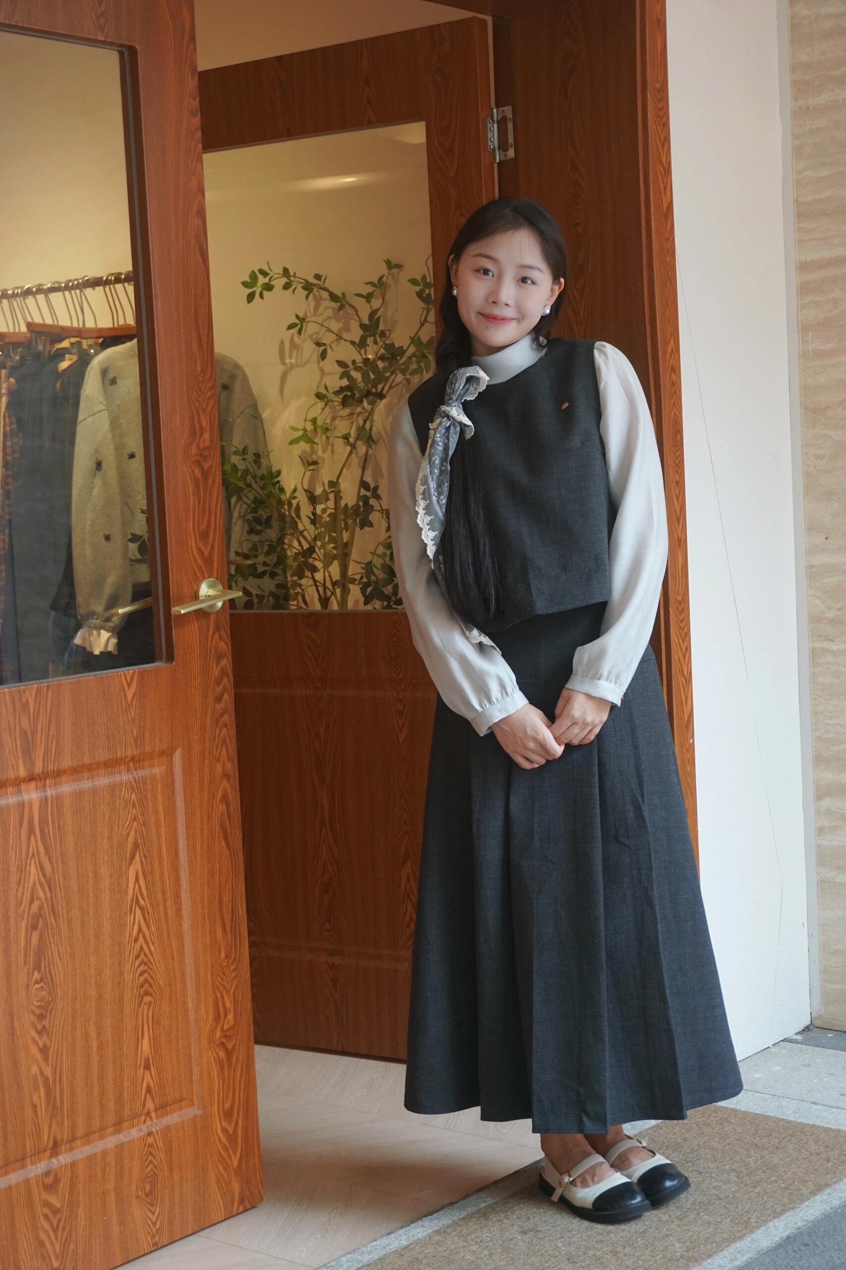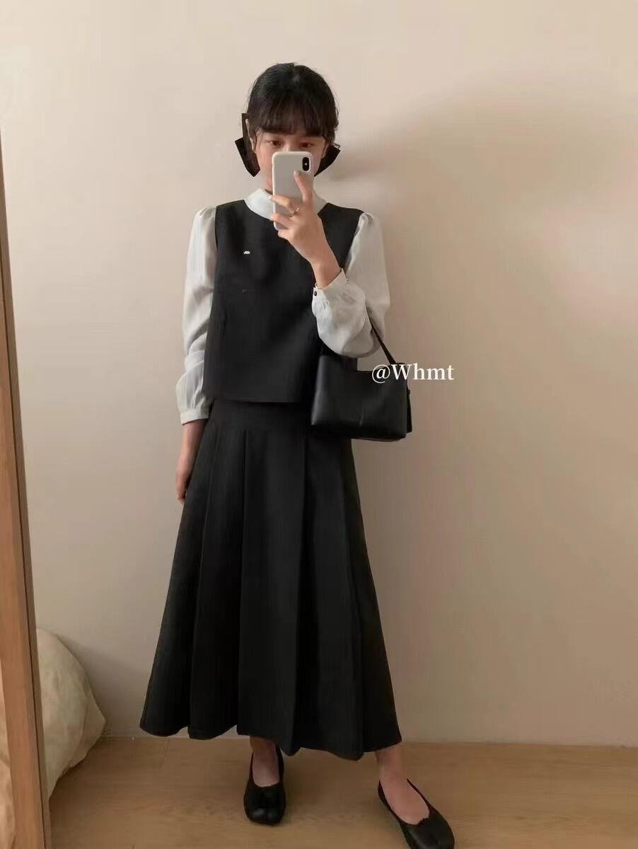 法式黑色马甲搭配一整套半身连衣裙